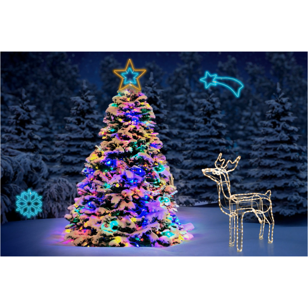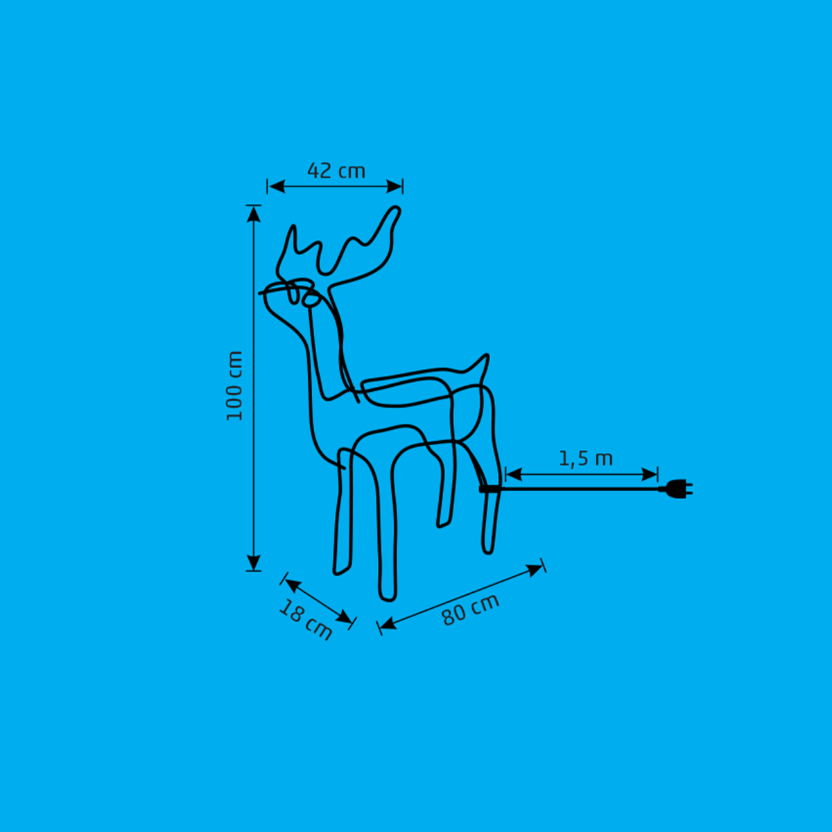 Hogyan varázsolhatja el otthonát vagy kertjét egyedi fényekkel? A LED-es 3D szarvas figura erre tökéletes megoldás. Ez az elegáns, borostyánszínű LED-es világító csövekből készült figura mindkét oldalon varázslatos fényekkel világítja meg környezetét, egyedi és meghitt hangulatot teremtve. A szarvasfigura nemcsak gyönyörű, hanem praktikus is. Könnyen szétszedhető és lapra hajtható, így jól tárolható és szállítható. Fém vázának köszönhetően stabil és strapabíró, bátran kint hagyhatja kertjében is. Ez a LED-es világítás energiatakarékos, telepítése gyors és egyszerű. Kültéri IP44-es csatlakozódugóval és fekete gumivezetékkel rendelkezik, mely ellenáll az időjárás viszontagságainak.