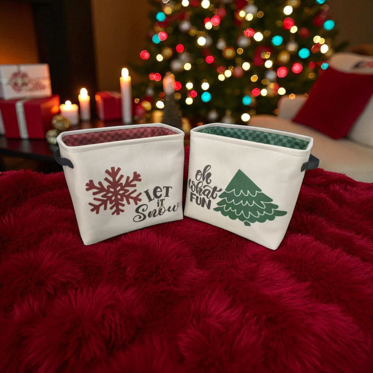 A 100% poliészterből készült, strapabíró kosár nemcsak vidám mintájával emeli ki az ünnepi dekorációt, hanem hasznos rendszerezőként is funkcionálnak.