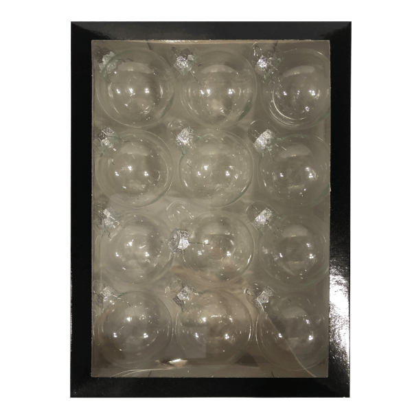 12 db-os karácsonyi üveg gömb dísz szett átlátszó színben; 5,7 cm-es, 4 db matt és 8 db fényes gömb.