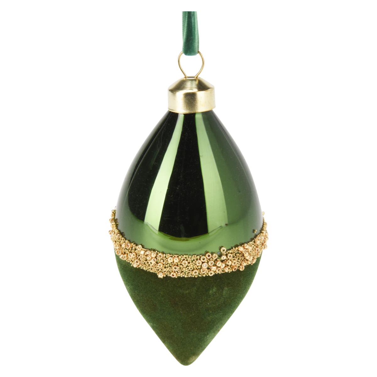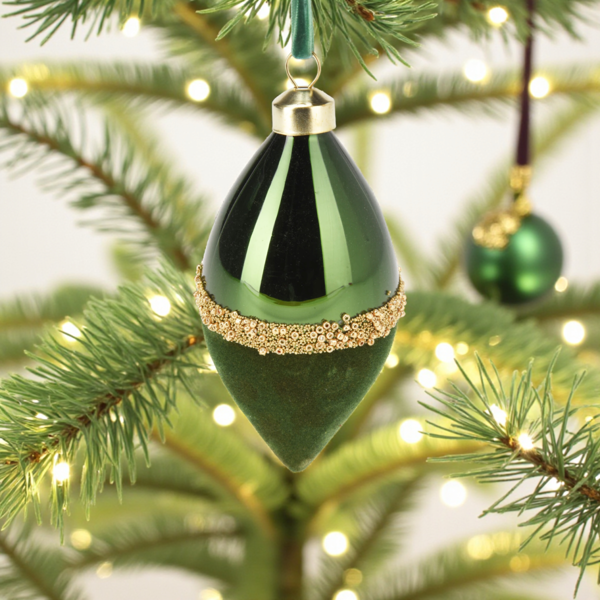Díszítsd karácsonyfádat ezzel a stílusos zöld üveggömbbel vagy csepp formájú változatával!