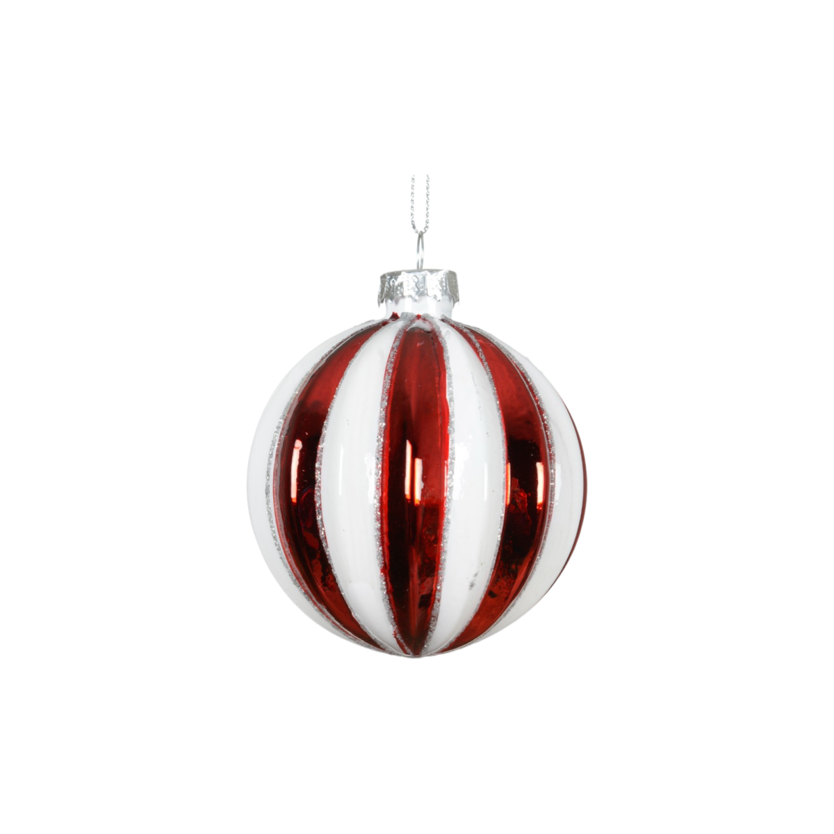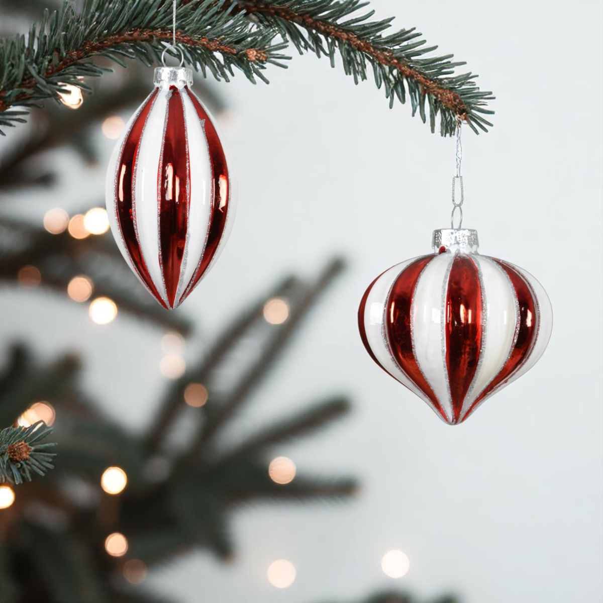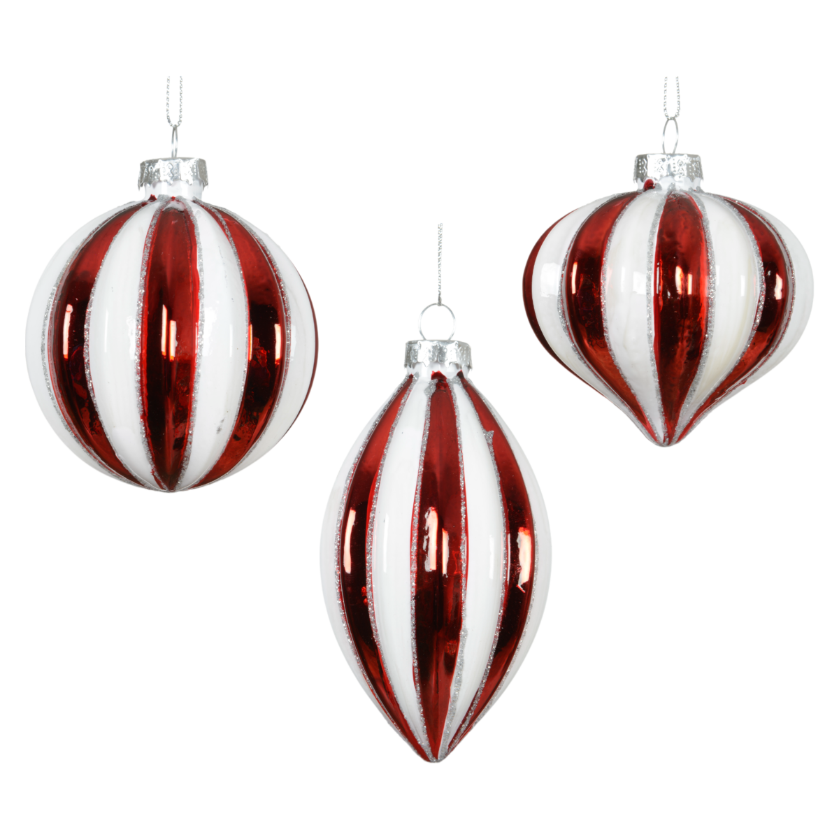 Ez a háromféle formában elérhető, 8 cm-es piros-fehér csíkos üvegdísz a hagyományos karácsonyi hangulatot ötvözi a modern fényes felülettel. A gömb, csepp és hagyma alakú díszek változatosságot visznek a fára, a fényes felület pedig ünnepi csillogást ad minden ágnak.