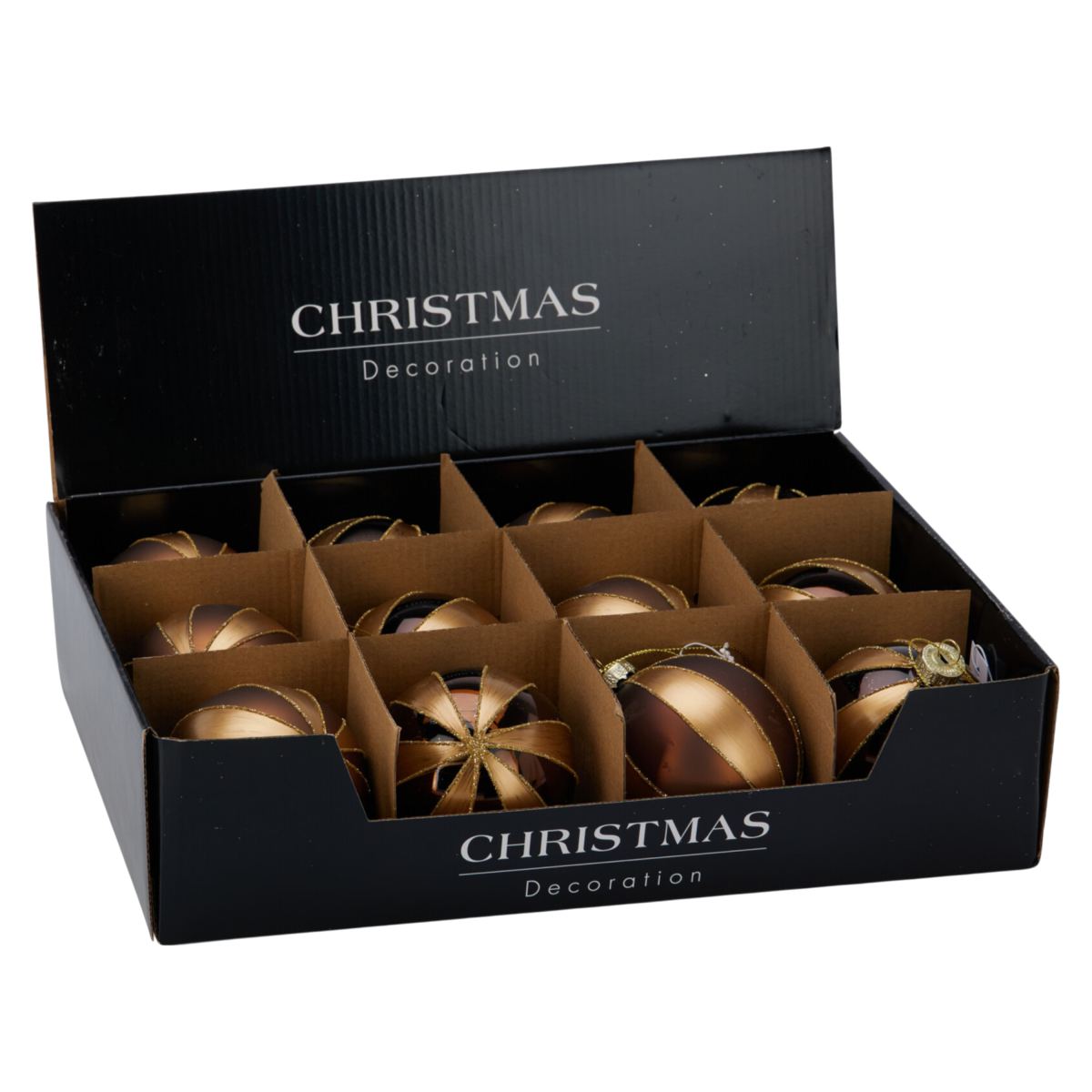 Egészítsd ki karácsonyfád dekorációját ezzel a 9 cm x 8 cm x 8 cm-es méretű, klasszikus üveggömbbel, amely kétféle vegyes színösszeállításban érhető el.