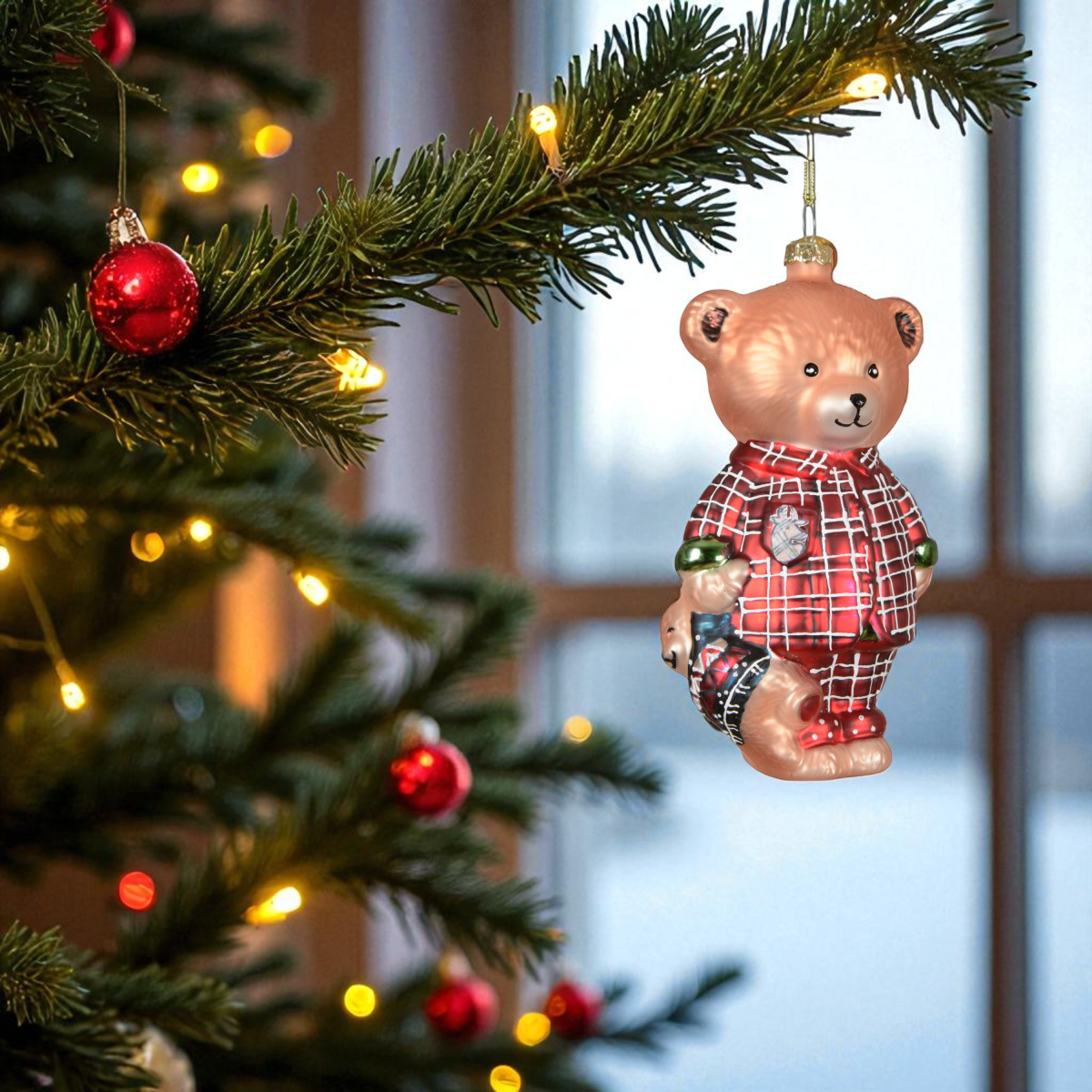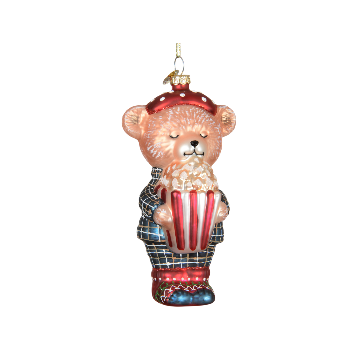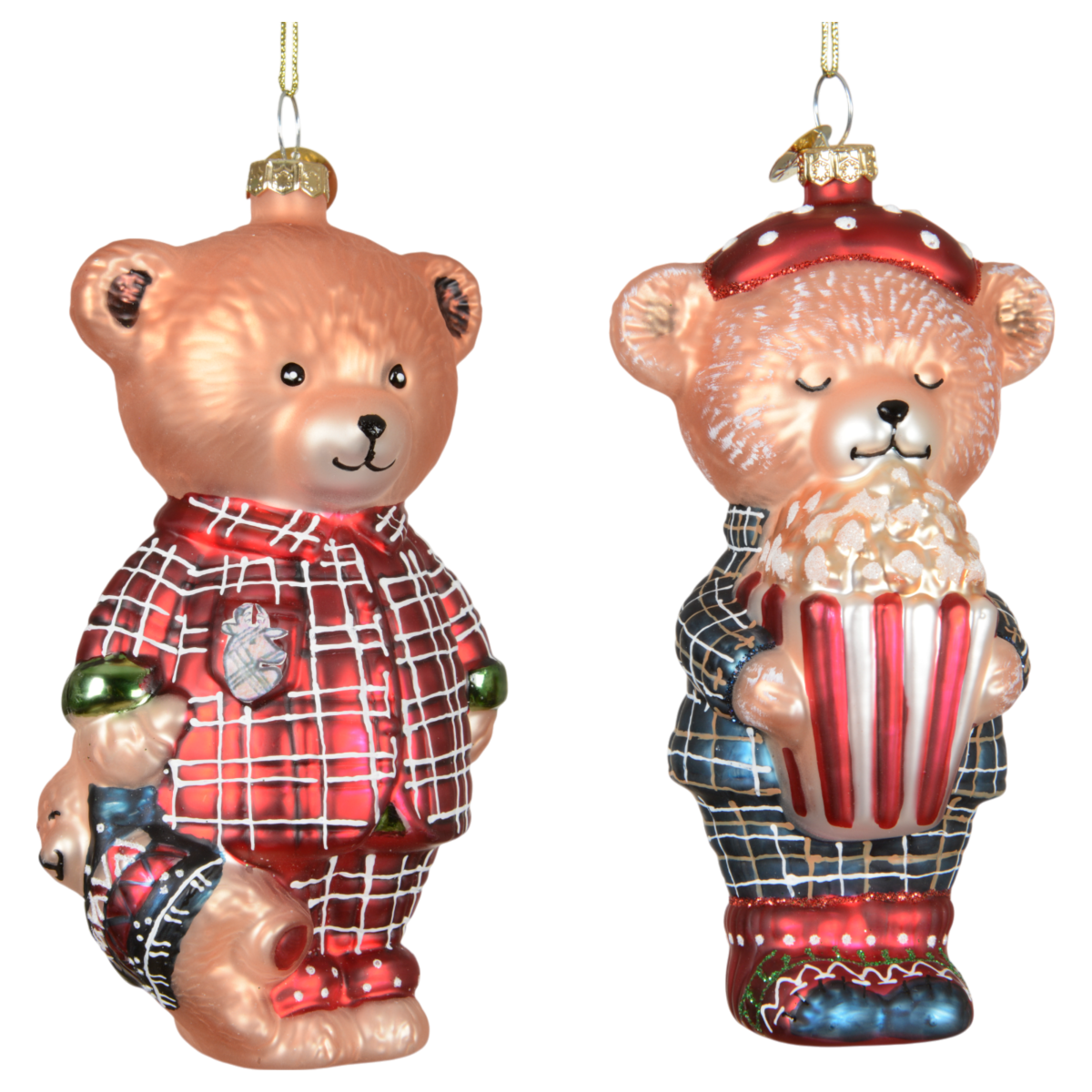 Ezek az aranyos, részletgazdag kidolgozású üvegdíszek kétféle változatban kaphatók: az egyik maci pizsamában alvómackót ölel, míg a másik egy nagy adag pattogatott kukoricát tart a kezében. A 13 cm-es magasság jól láthatóvá teszi őket a karácsonyfán, egyedi mintájuk pedig különleges hangulatot varázsol az ünnepi dekorációba.