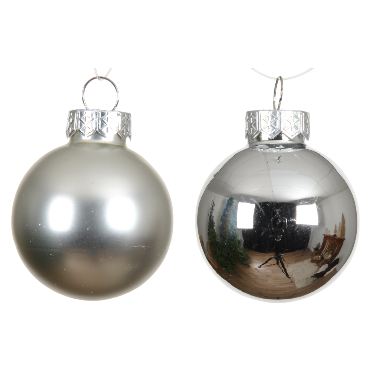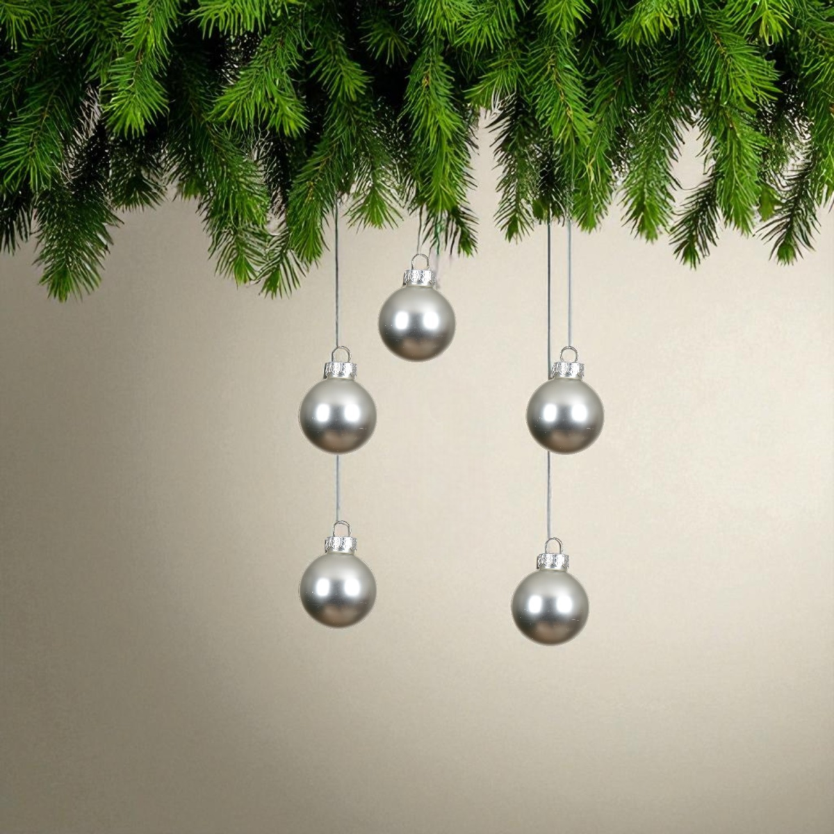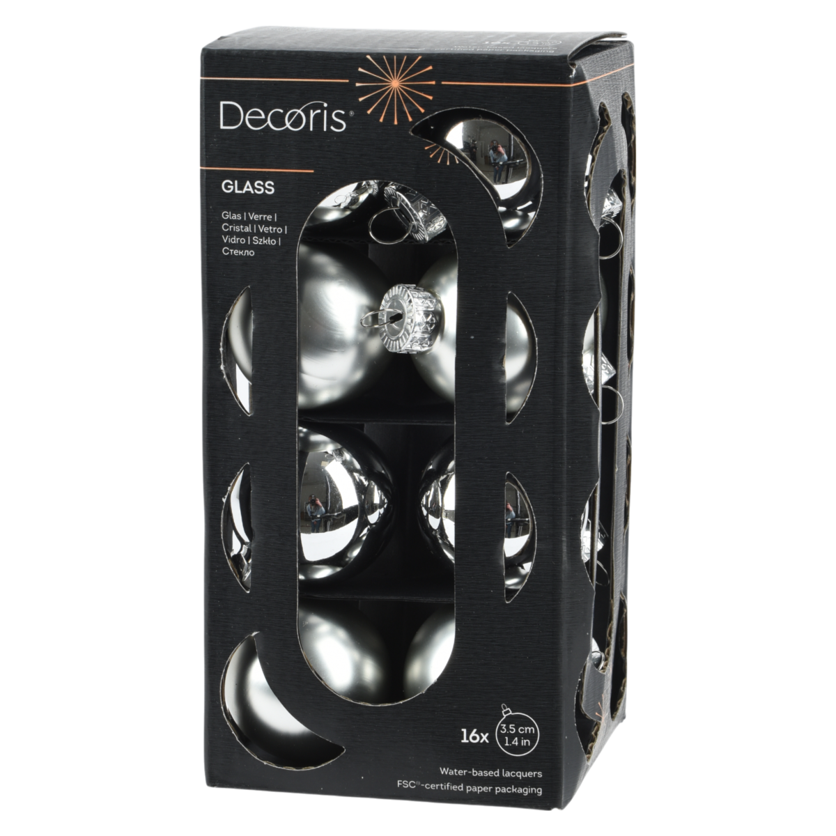 Ez a 16 darabos üveggömb szett tökéletes választás kisebb karácsonyfák, koszorúk vagy asztaldíszek díszítéséhez. Az ezüst színű gömbök matt és fényes kivitelben is megtalálhatók a csomagban, így változatos, mégis harmonikus hatást keltenek. A 3,5 cm-es átmérő ideális kisebb ágakhoz és dekorációs kiegészítőkhöz is. A csomag 8 db matt és 8 db fényes gömböt tartalmaz.