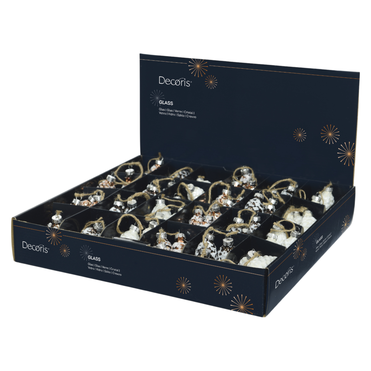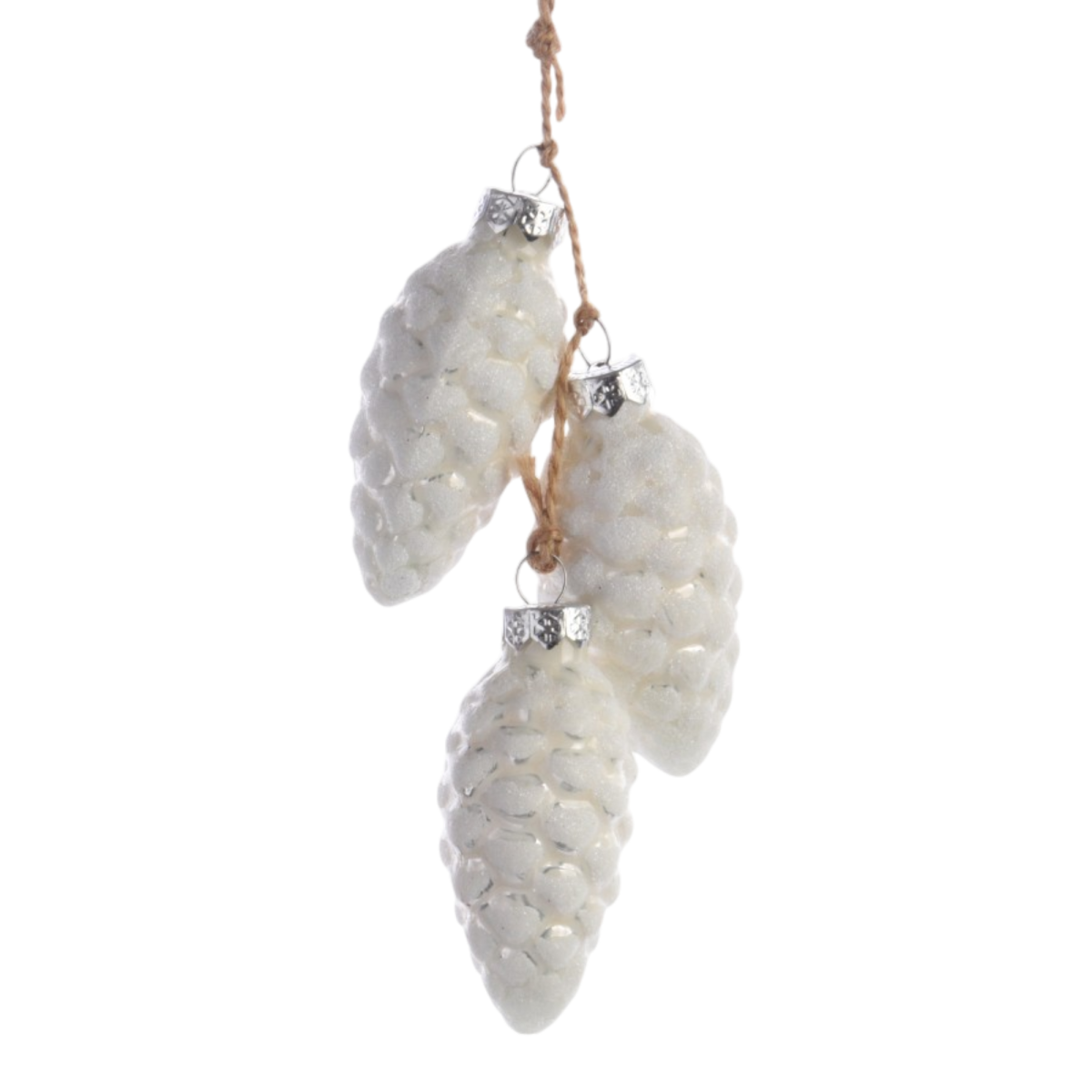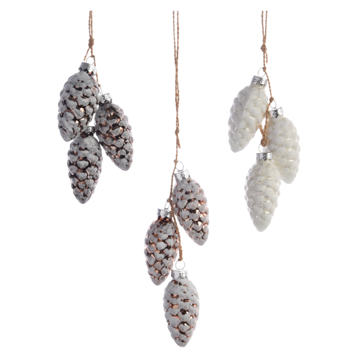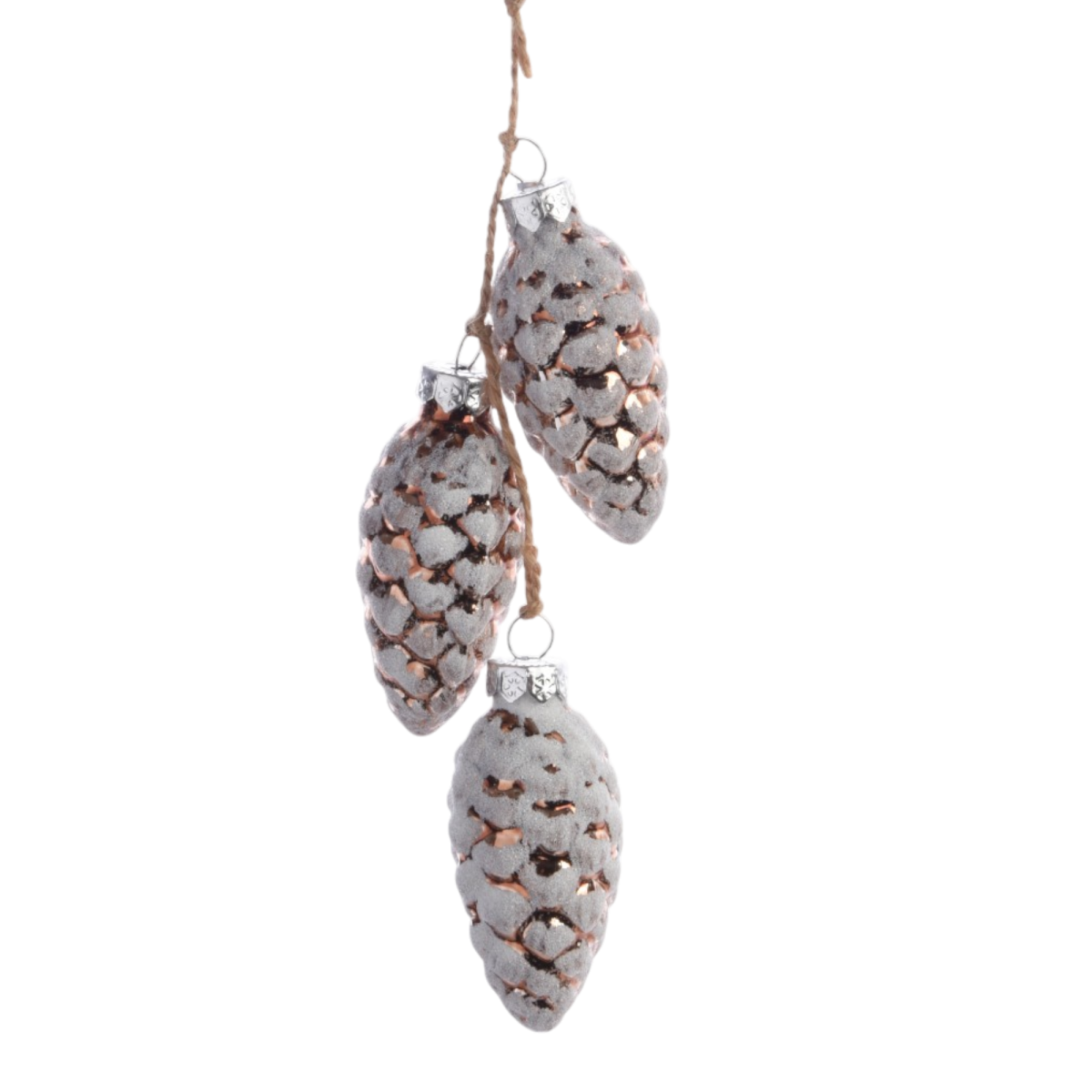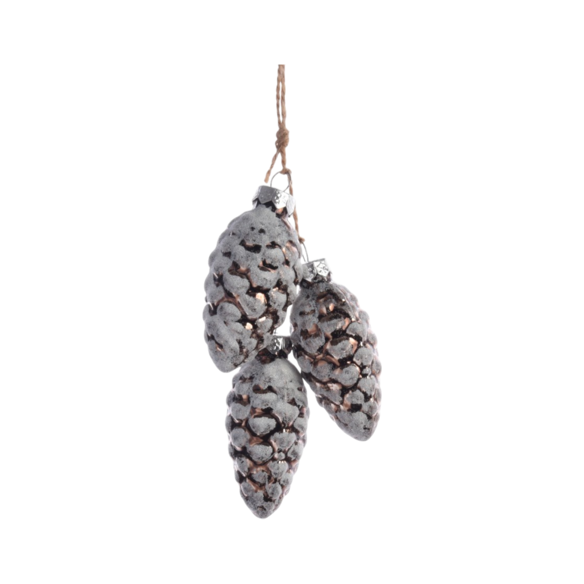 Ez a 6 cm-es méretű, üvegből készült tobozdísz a természetes karácsonyi dekorációk kedvelőinek szól. A különböző árnyalatokban elérhető díszek finoman csillognak, miközben rusztikus kötözőzsinórral könnyen rögzíthetők a fára vagy más dekorációs felületre.