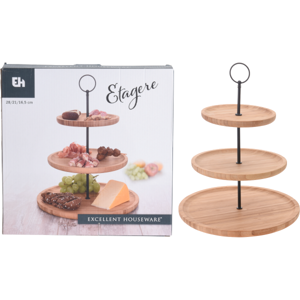 Termék anyaga: bambusz/fém, 3 emeletes, magassága: 34cm.