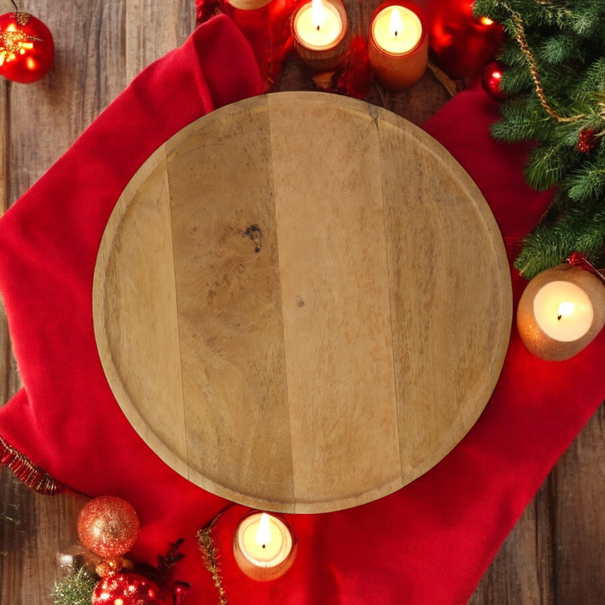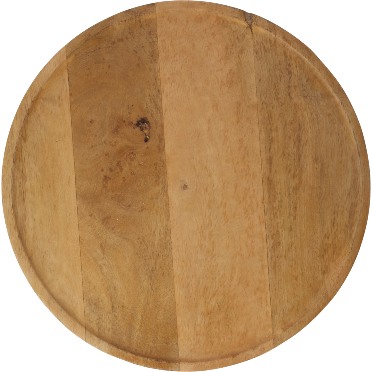 Ez a 38 cm átmérőjű, kerek formájú, natúr színű fa tányér letisztult stílusával természetes eleganciát sugároz. Mangófából készült, amely tartósságot és egyedi erezetet biztosít minden darabnak. Ideális sütemények, gyümölcsök vagy kisebb dekorációs elemek elhelyezésére, de önmagában is mutatós kiegészítője lehet az asztalnak.