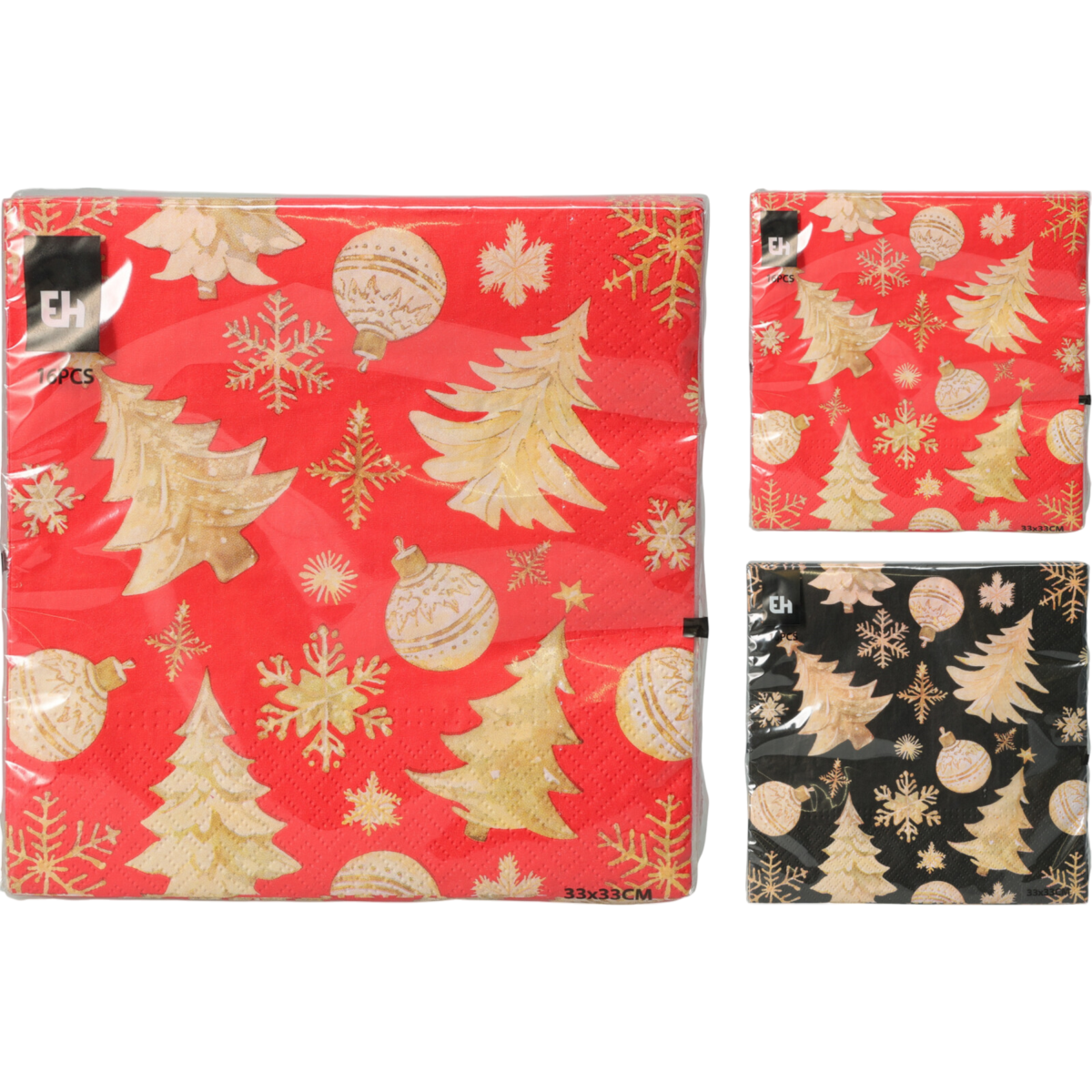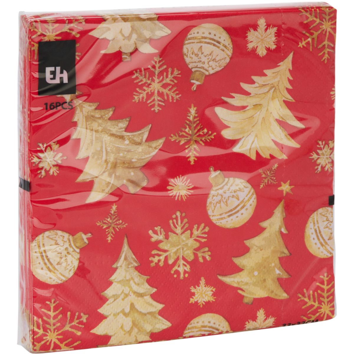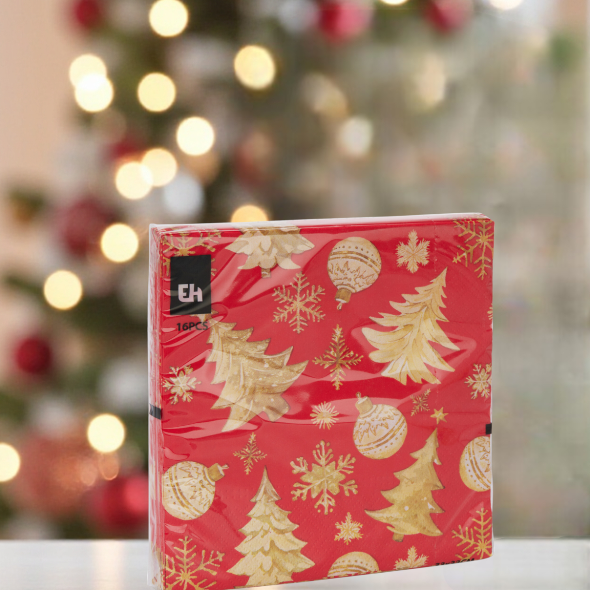 🎄 Karácsonyi szalvéta 16 db/csomag – 33×33 cm, kétféle minta 🎁