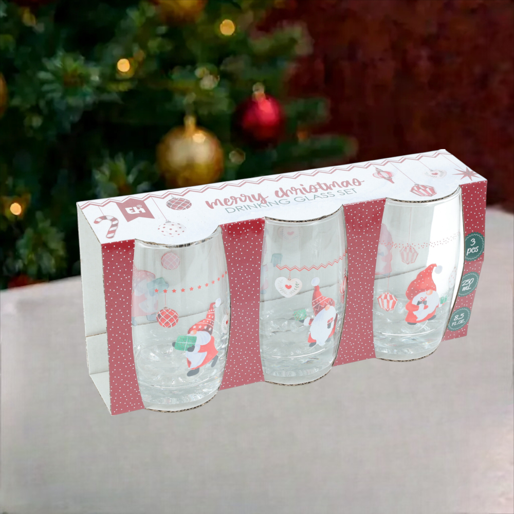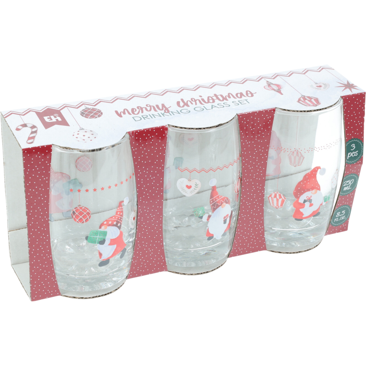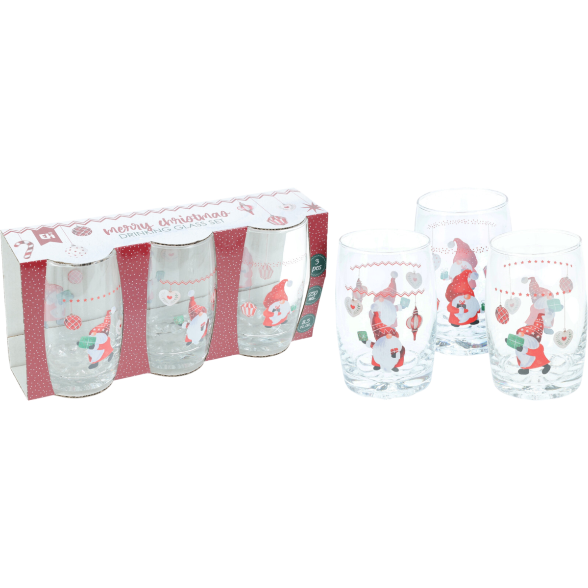 Csempéssz ünnepi hangulatot az asztalra ezzel a bájos karácsonyi pohár szettel! A 3 darabos üvegpohár készletet apró törpe minták díszítik, így tökéletes választás családi reggelikhez, ünnepi ebédekhez. A 300 ml-es űrtartalom kényelmes méret a mindennapi használathoz is.