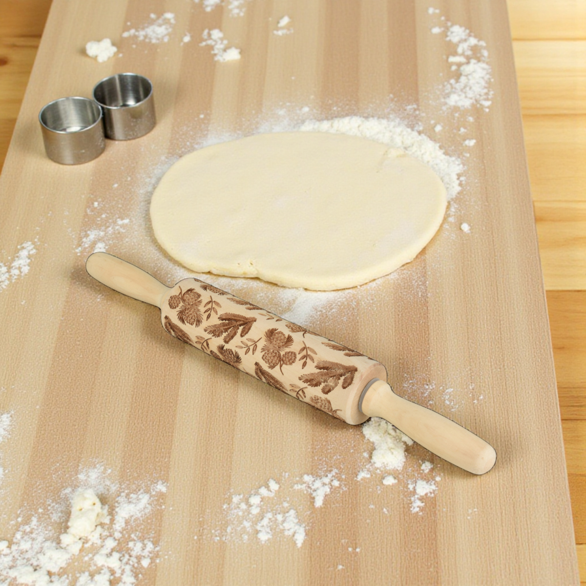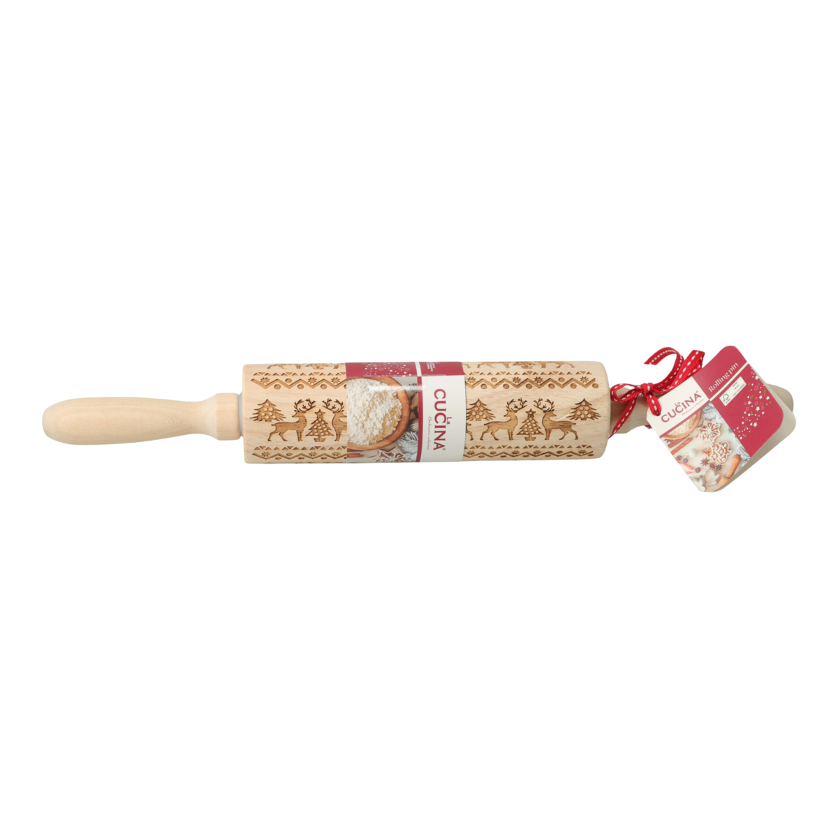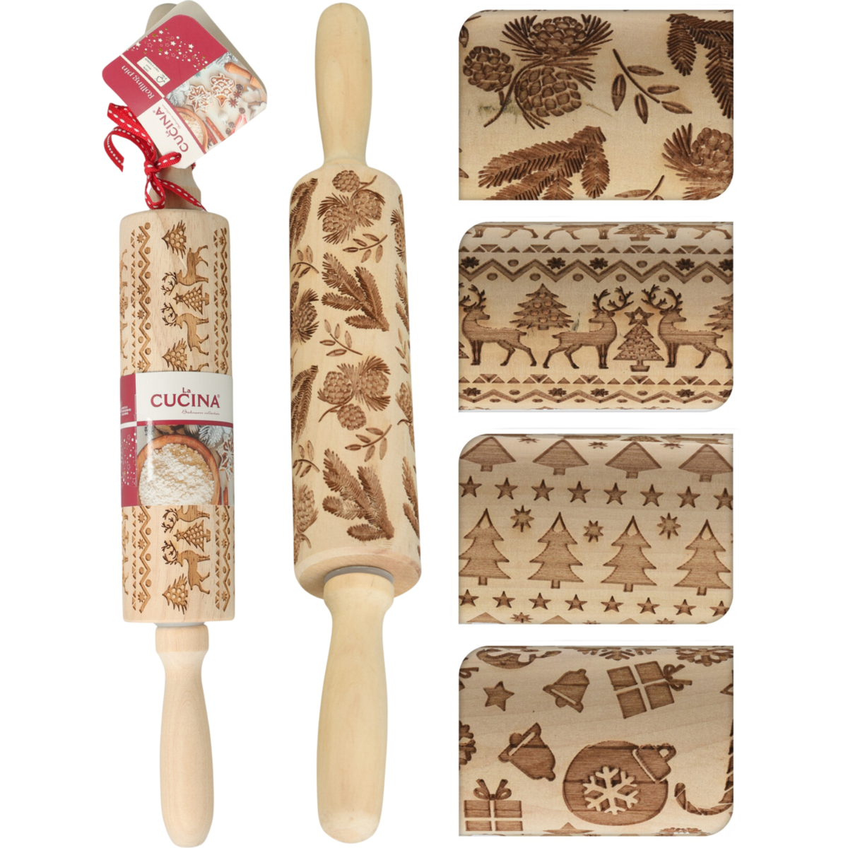 Dobd fel a karácsonyi sütést ezzel a gravírozott mintás sodrófával! A 35×5 cm-es sodrófa nemcsak praktikus konyhai eszköz, hanem a tészták díszítésére is tökéletes. A fa felületbe vésett minták szépen belenyomódnak a tésztába, így minden sütemény ünnepi, különleges megjelenést kap.