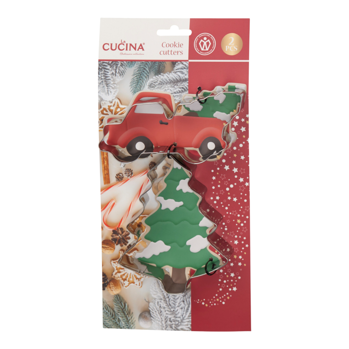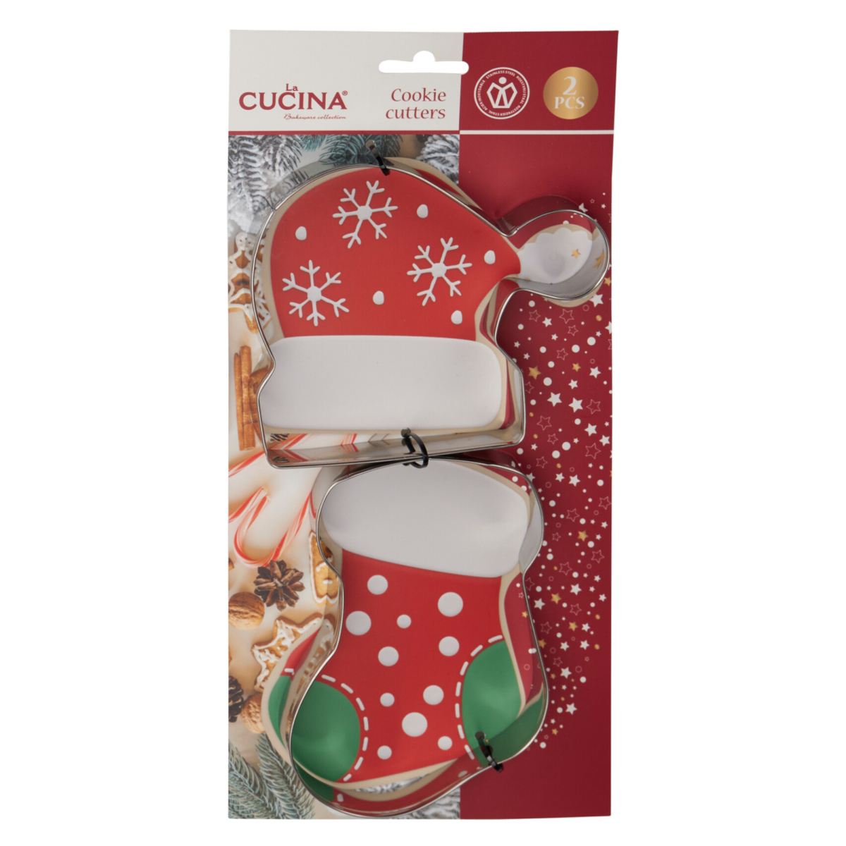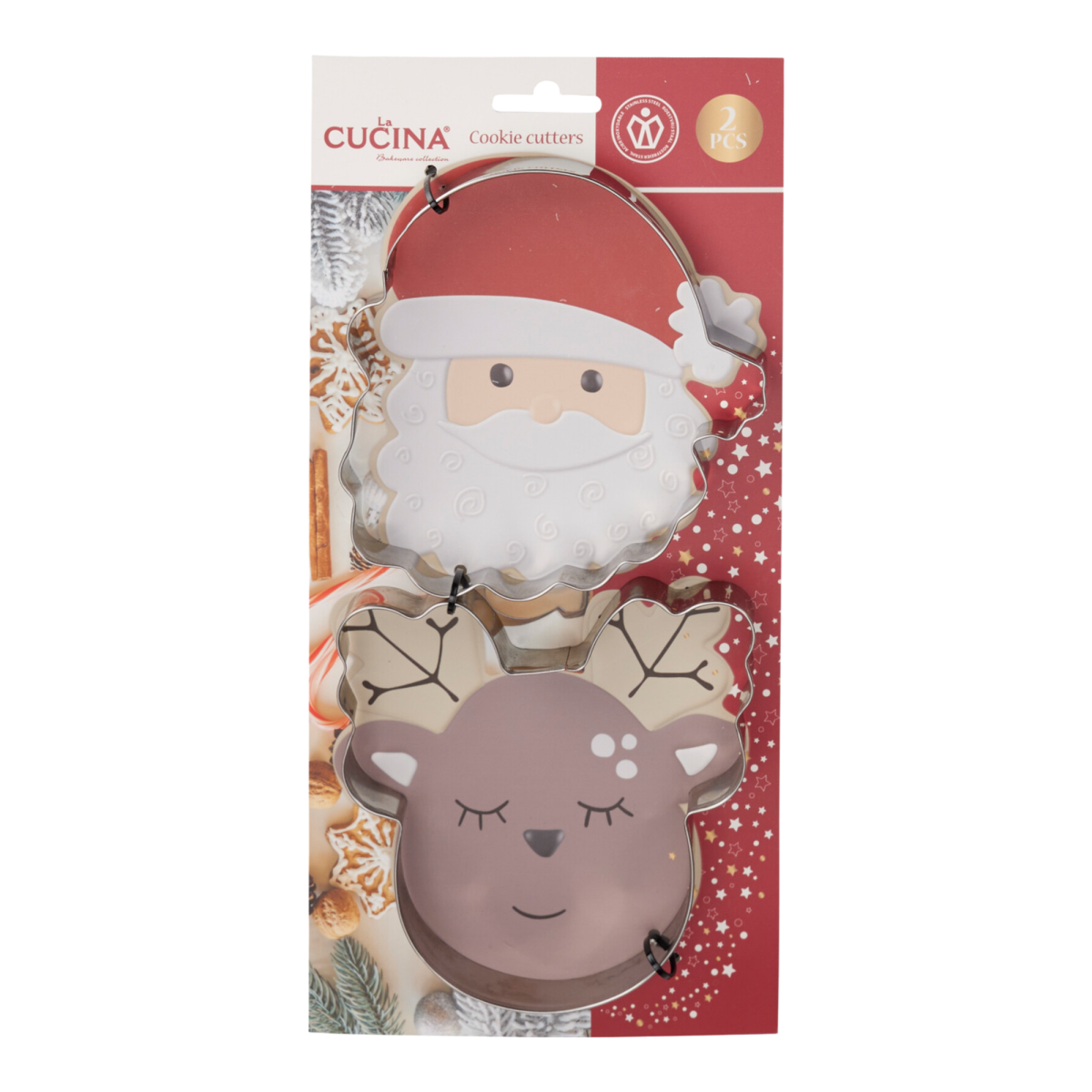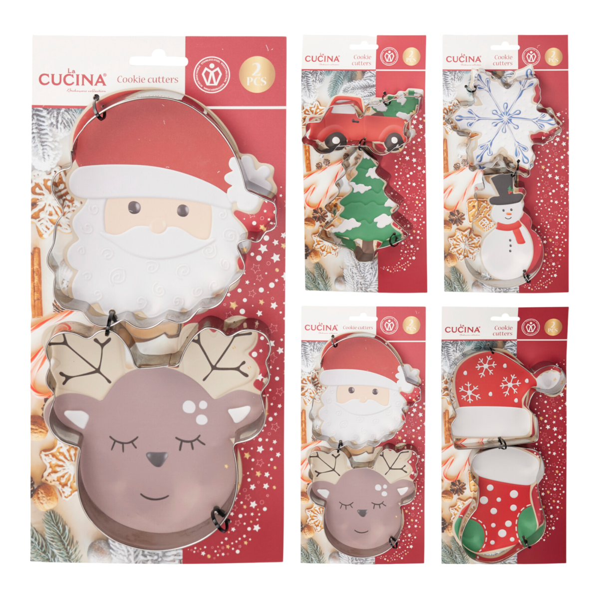 Készíts különleges, ünnepi hangulatú sütiket ezzel a praktikus kiszúró készlettel! A rozsdamentes acélból készült, 2 darabos szett tartós, könnyen tisztítható és ideális választás az adventi sütögetésekhez. A formák vidám karácsonyi mintái – Télapó és rénszarvas, autó és karácsonyfa, mikulássapka és csizma, hópehely és Mikulás – igazi díszei lesznek a süteményes tálnak.