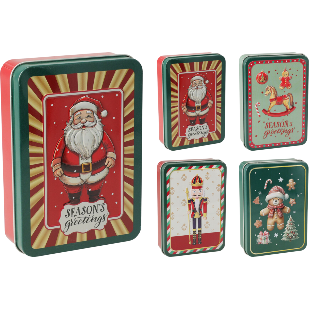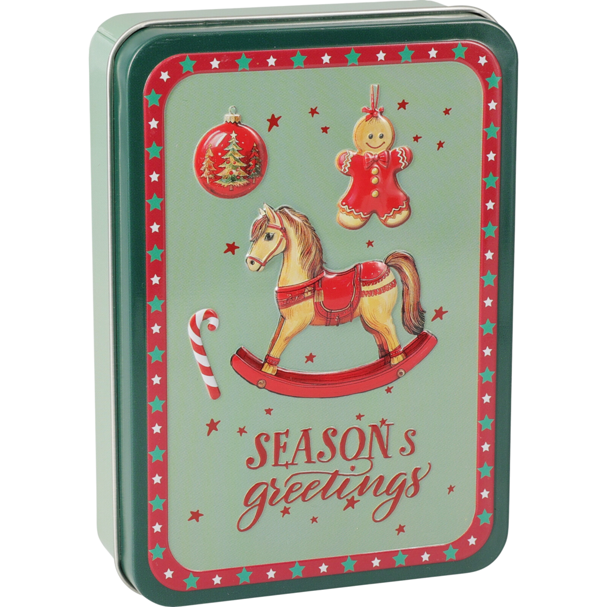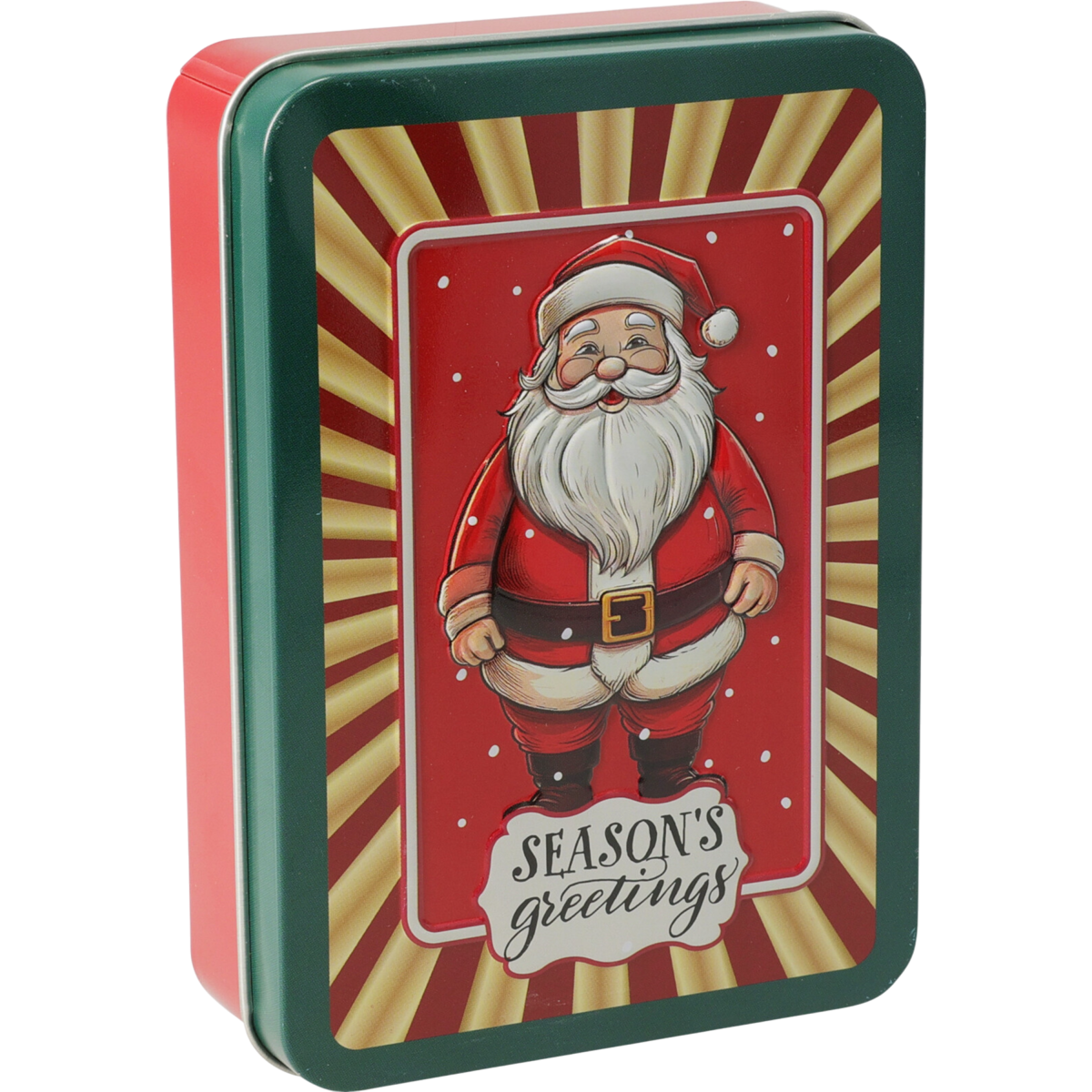 Hangolódj az ünnepekre ezzel a vidám mintájú, praktikus karácsonyi fémdobozzal! Kompakt méretének köszönhetően kiváló választás apró ajándékok, cukorkák vagy ünnepi díszek tárolására. A doboz 0,2 mm vastag acélból készült, így masszív és újrahasználható – évről évre előveheted, amikor beköszönt a karácsonyi időszak.