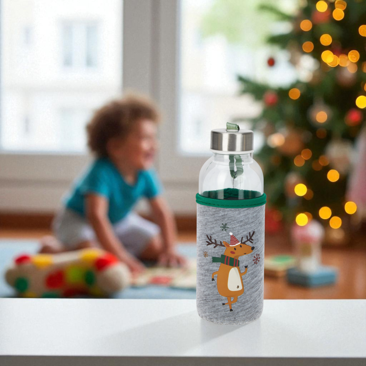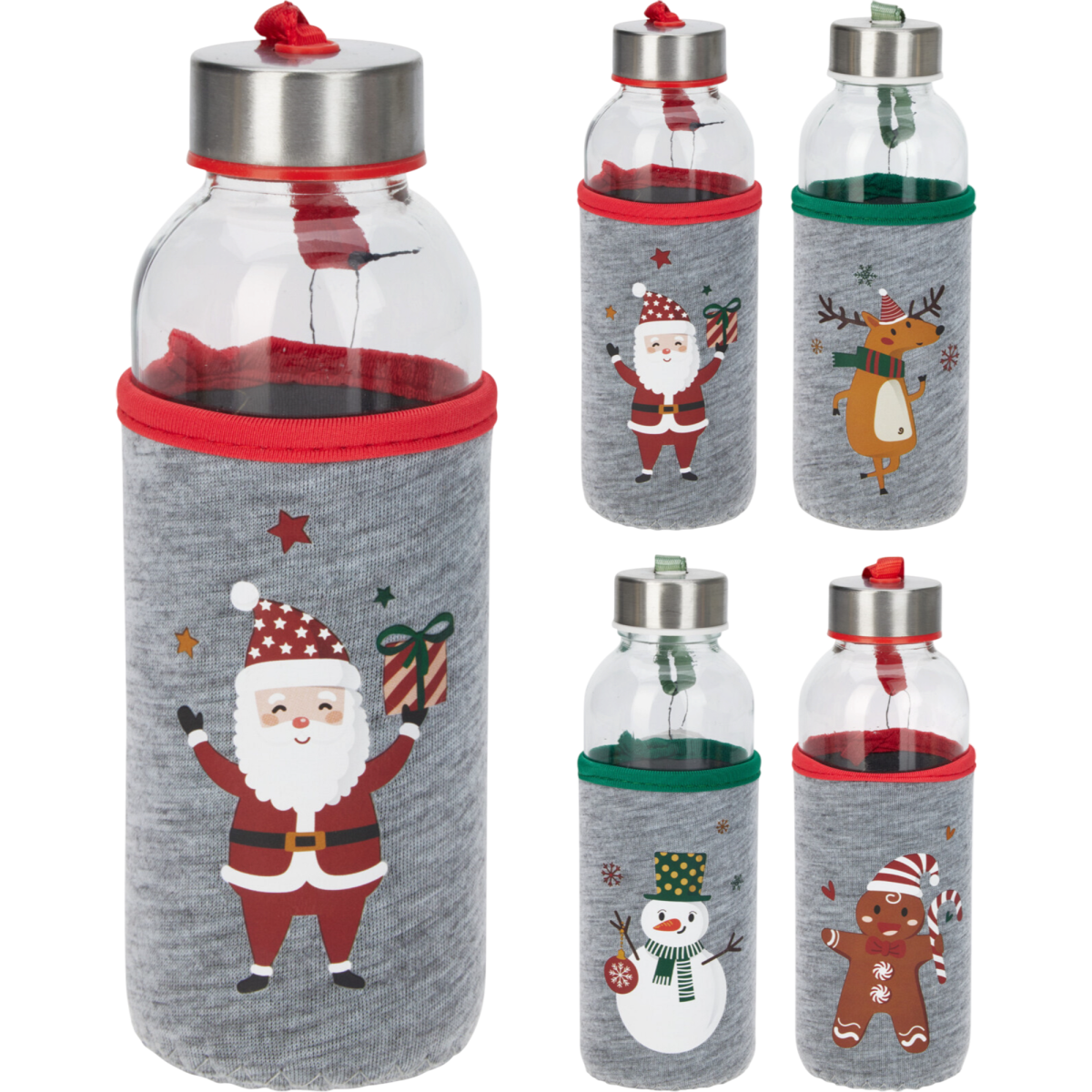Ez a 400 ml-es, üveg karácsonyi ivópalack praktikus és vidám választás az ünnepi időszakra – akár otthon, munkahelyen vagy útközben használod. A négyféle mintával (Mikulás, hóember, mézeskalács figura és rénszarvas) készült palack külső részét puha textil borítás díszíti, amely nemcsak stílusos, de kényelmes fogást is biztosít. A rozsdamentes acél csavaros kupak szivárgásmentes záródást kínál.