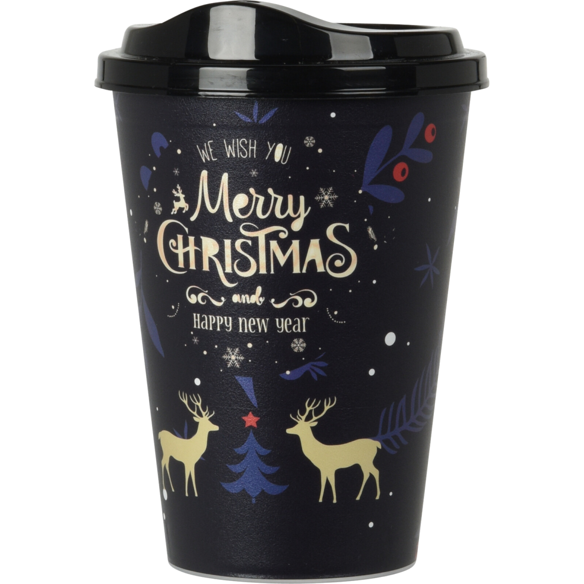 Praktikus, ünnepi hangulatú utazó bögre a mindennapi kávéhoz vagy teához. Könnyű, strapabíróbb műanyagból készül, kompakt mérettel – táskában is kényelmesen hordható.