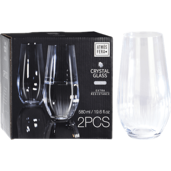 2 db-os üvegpohár szett, anyaga: üveg -kristály. Űrtartalom: 580 ml.