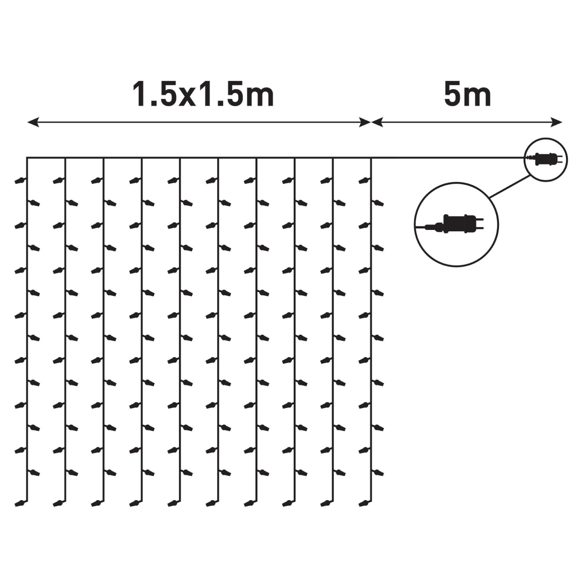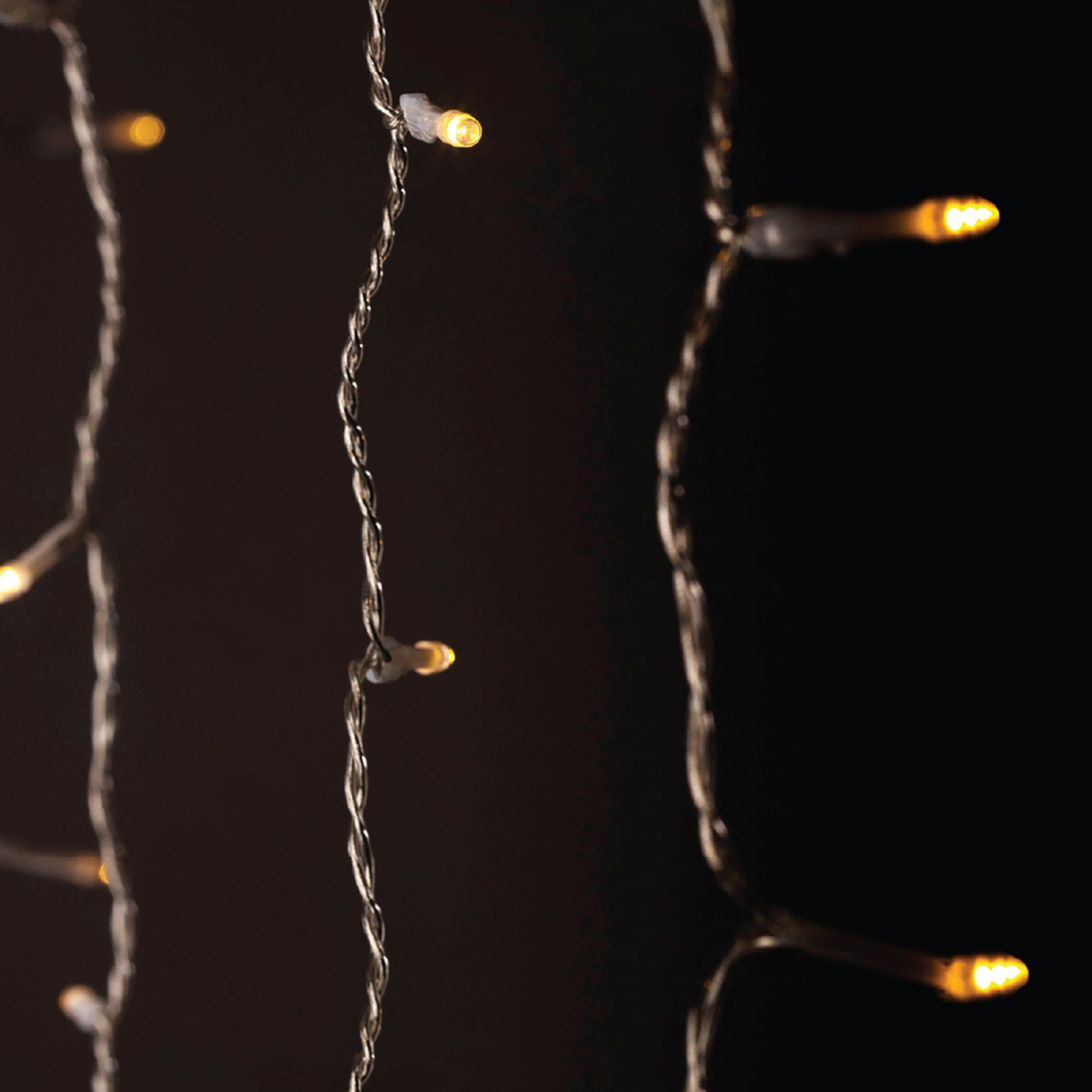 Ez a melegfehér LED-es fényfüggöny egy látványos és sokoldalúan használható fénydekoráció.