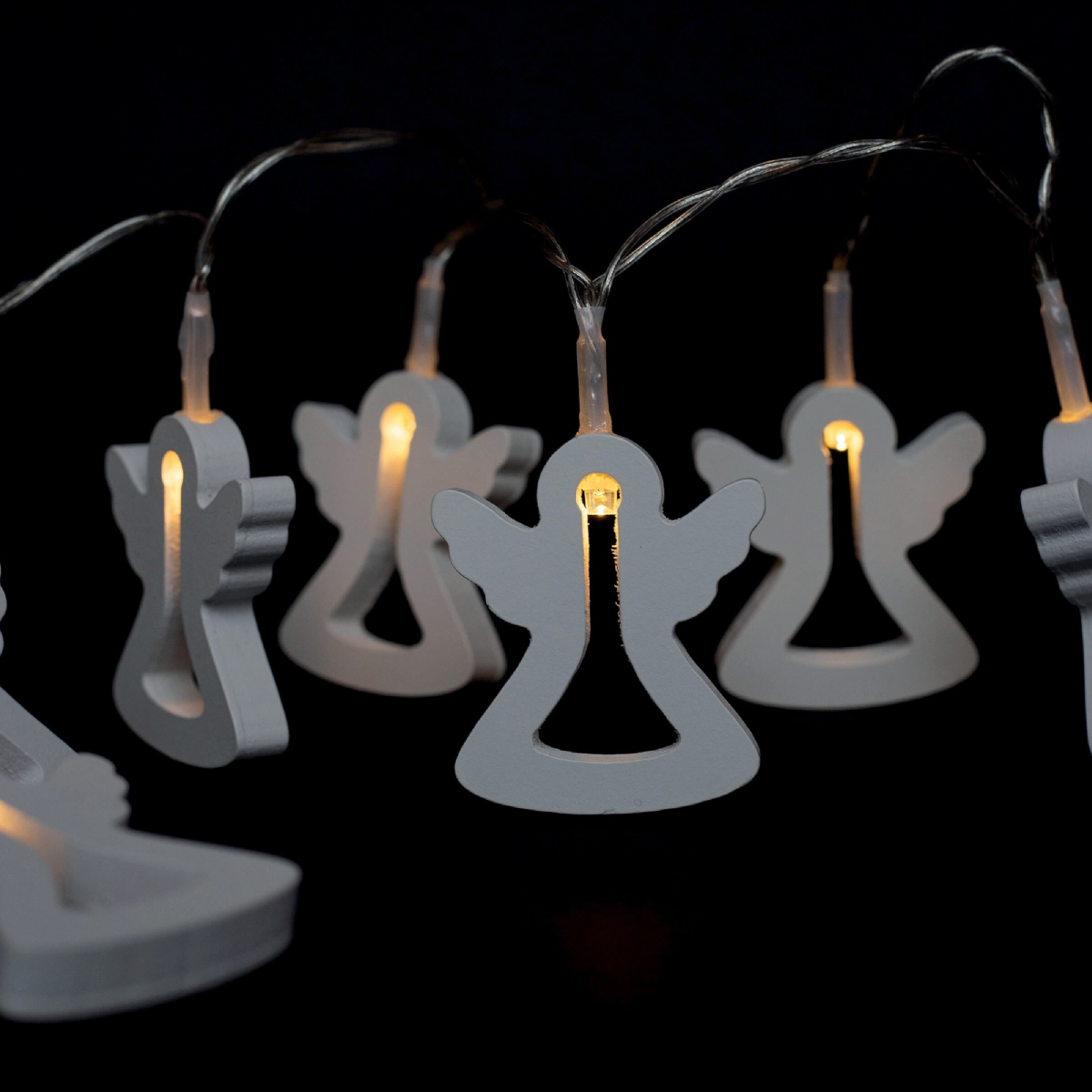 Ez az angyalsziluettes fényfüzér bájos és praktikus díszvilágítás, amely ünnepi meghittséget visz bármely beltéri térbe.