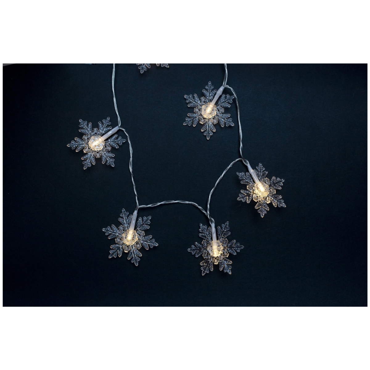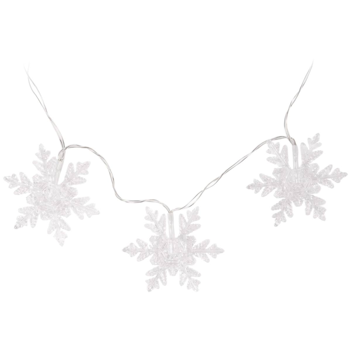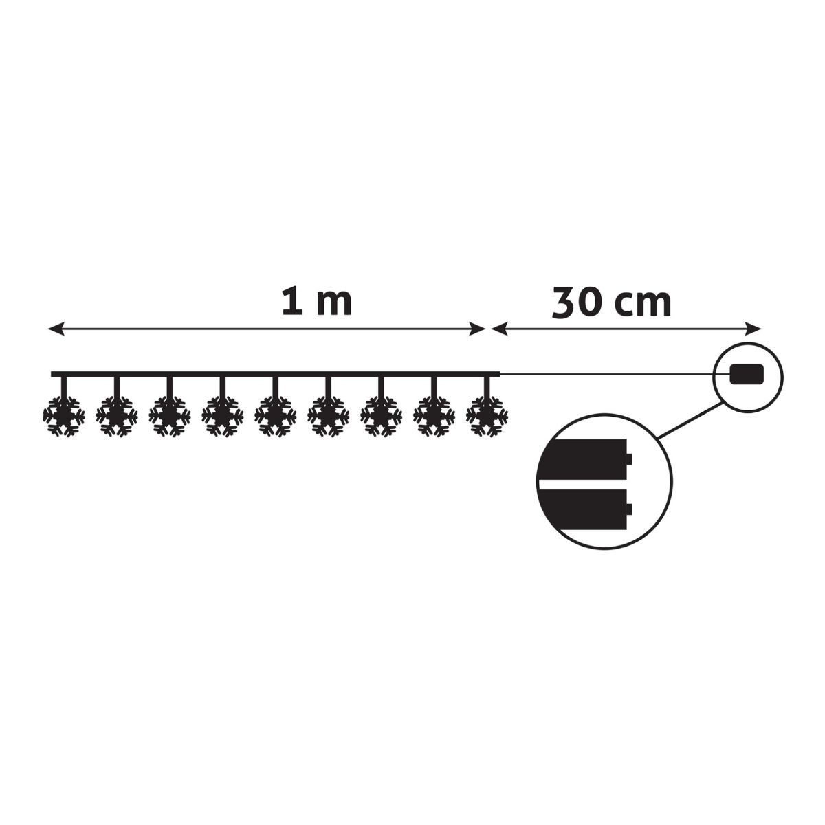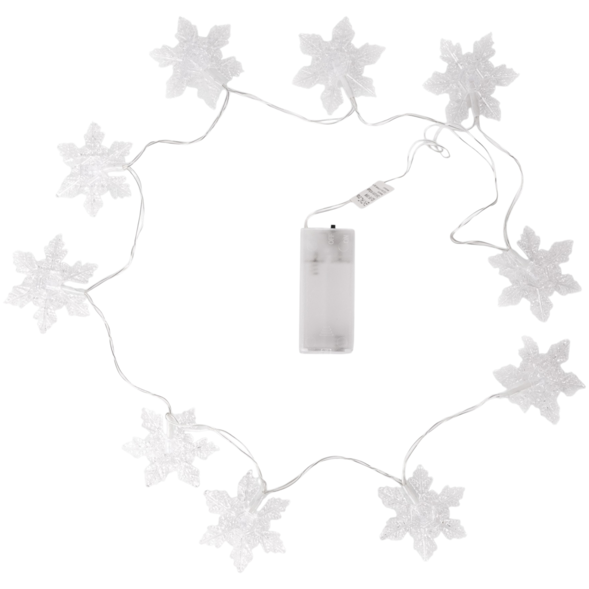 A melegfehér fényű LED-ek és az áttetsző, műanyag hópelyhek kellemes látványt nyújtanak, miközben az elemes működés teljes szabadságot ad az elhelyezésben.