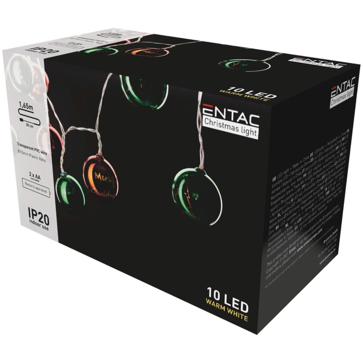 Ez a színes díszgömbökkel ellátott Entac LED fényfüzér ünnepi hangulatot varázsol bármelyik beltéri térbe.