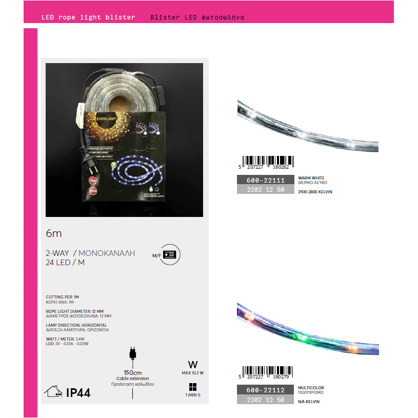 Egész évben használható ez a 6 méter hosszú, 144 Led-es színes/multicolor fénycső, amely 8 féle fényjátékkal, kül-és beltéren egyaránt használható az IP44-es védelme miatt. Szobákba, bútorok köré, ablakokba tehető, a fiatalok kedvence!