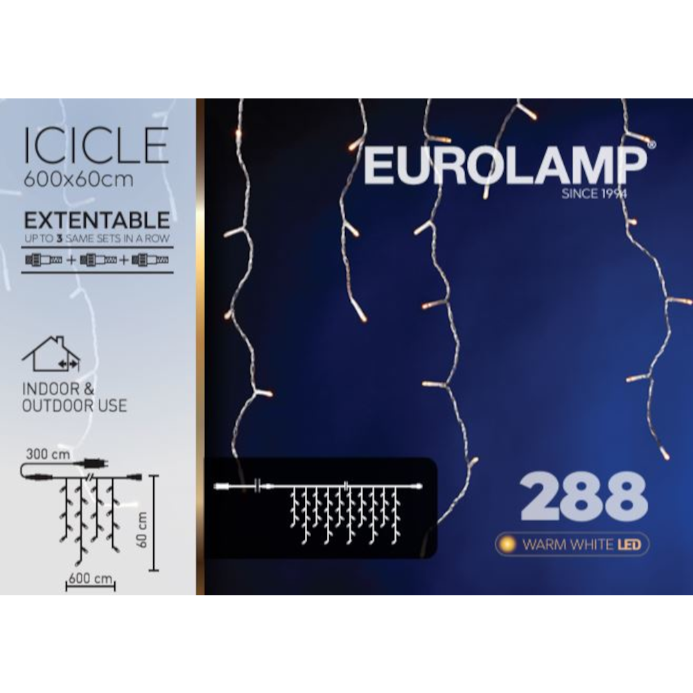 Kültéren és beltéren egyaránt használható az IP44 védelemnek köszönhetően. Bővíthetőségének köszönhetően 288-864 Led számig toldhatók a szettek. A jégcsapok hosszúsága különböző, a vezeték színe átlátszó, mely sokkal szebb megjelenést nyújt. A 288 LED-es jégcsapfüzér hossza 600 cm ( tápkábel nélkül), a leghosszabb jégcsap hossza függőleges irányban 60 cm. A tápkábel hossza 3 m. A doboz tartalmazza a transzformátort (tápegység), a tápkábelt és a Led izzósort. A Eurolamp innovatív, bővíthető jégcsapfüzére kiválóan alkalmas különböző rendezvények, családi ünnepek kiegészítő dekorálására. Mesébe illő hangulatot kölcsönöz otthonában, amely akár karácsonykor, akár az év többi napján is kellemes hangulatot áraszt környezetében.