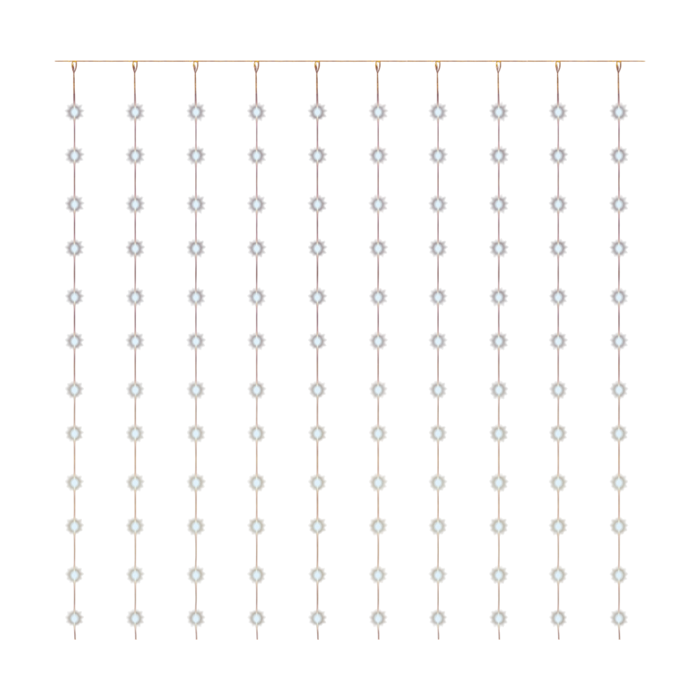 A micro LED-es fényfüggöny hidegfehér fénye letisztult, modern hangulatot teremt, legyen szó ünnepi dekorációról vagy elegáns kiegészítő fényről bármely térben.