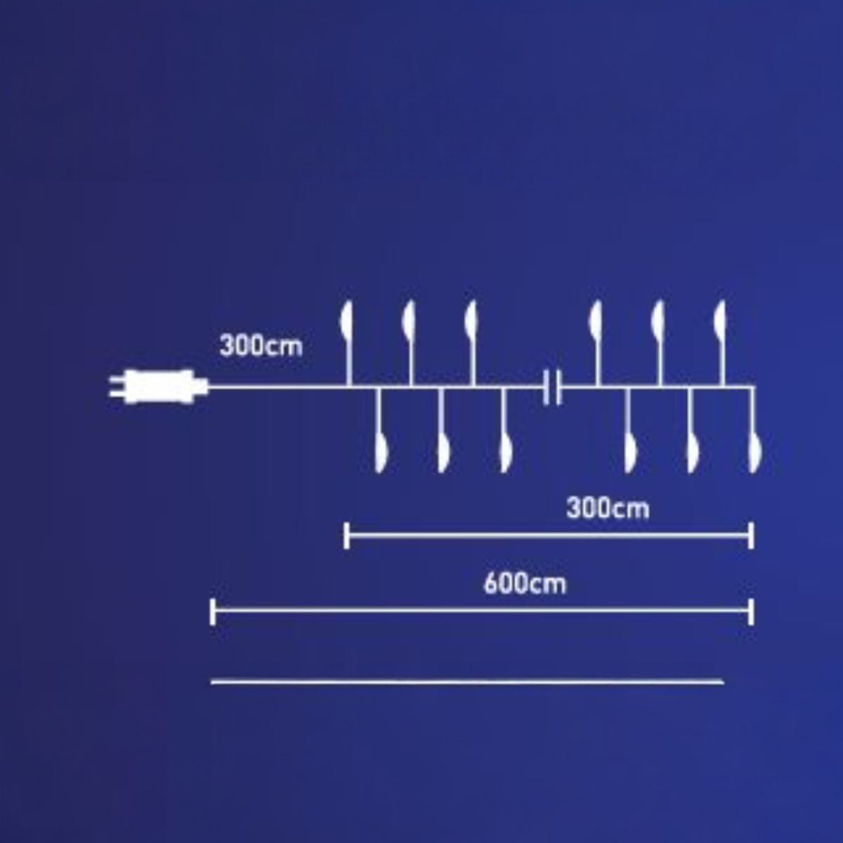 A 3 méteres fényfüzérhez 3 méter hosszú tápkábel tartozik, ami rugalmas elhelyezést tesz lehetővé. IP44 védettsége révén beltéren és kültéren egyaránt használható, ellenáll a fröccsenő víznek.