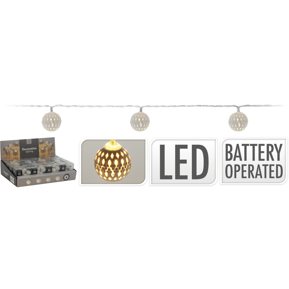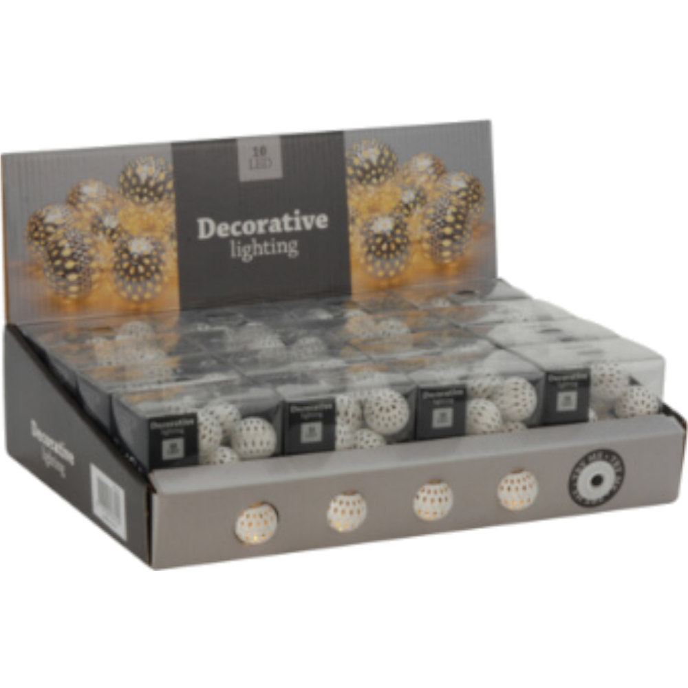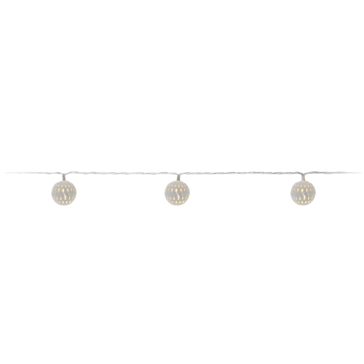10 db fehér gömböt tartalmazó LED-es 1 méteres fényfüzér, 30 cm-es kábellel. 2 db AA elemmel működik, mely nem tartozéka a terméknek. Ezzel a fényfüzérrel meghittebbé varázsolhatjuk otthonunkat, így fokozhatjuk az ünnepi hangulatot.