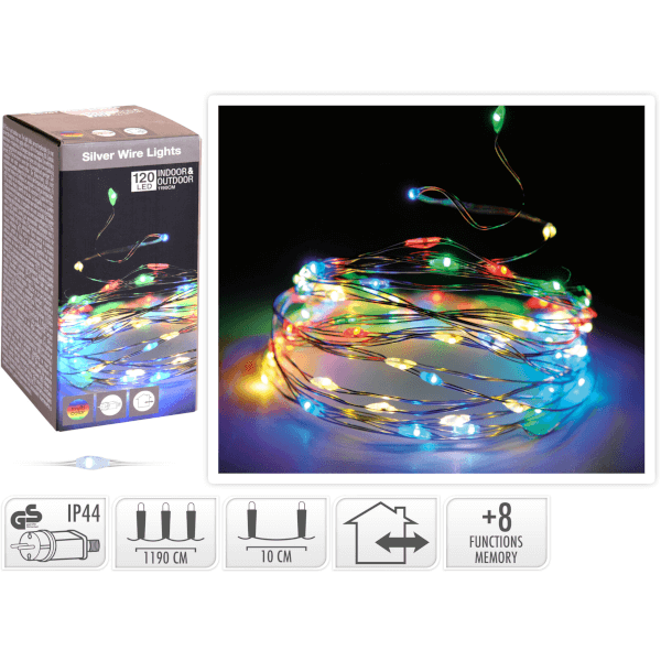 120 darab színes mikro LED-es fényfüzér, mely 11,9 m hosszú + 3m hosszú kábel. 8 funkciós kontroller memóriával, adapteres működéssel. Ezzel a dekorációs fénnyel biztosan egyedi hangulatot varázsolhatunk otthonunkban vagy a teraszon.