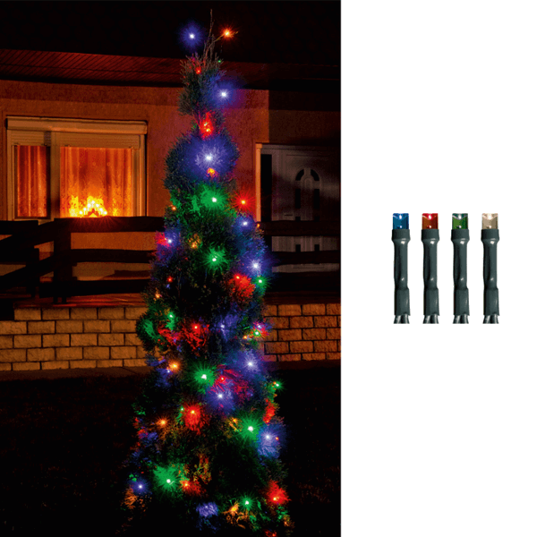 Kültéri kivitel. 200 db LED. 8 programos, memóriás. Tápellátás: 230 V~/31 V adapter. Füzér hossza: 14 m. Tápvezeték hossza: 5 m.