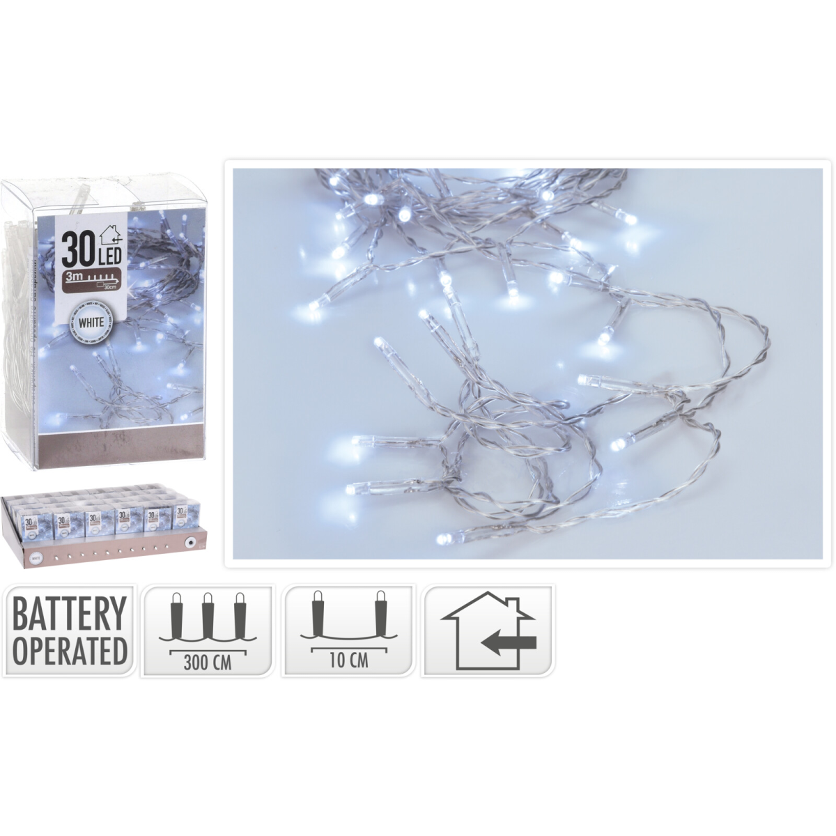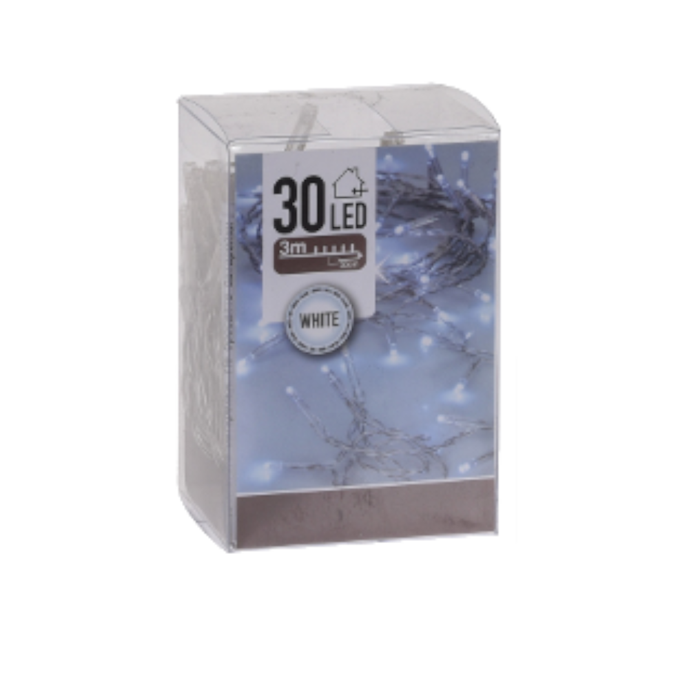 Varázsold ünnepi hangulatba otthonodat ezzel a gyönyörű karácsonyi fényfüzérrel! A ragyogó fények tökéletesen kiegészítik a karácsonyi dekorációt, és meghittséget hoznak. Egyszerűen használható így gondtalanul élvezheted az ünnepi fényeket! Beltéri világítás, 30 fehér LED. Anyaga: műanyag.3 mm-es gömbök 10 cm-ként, 0,08 mm2 keresztmetszetű átlátszó huzal. Elemet nem tartalmaz!