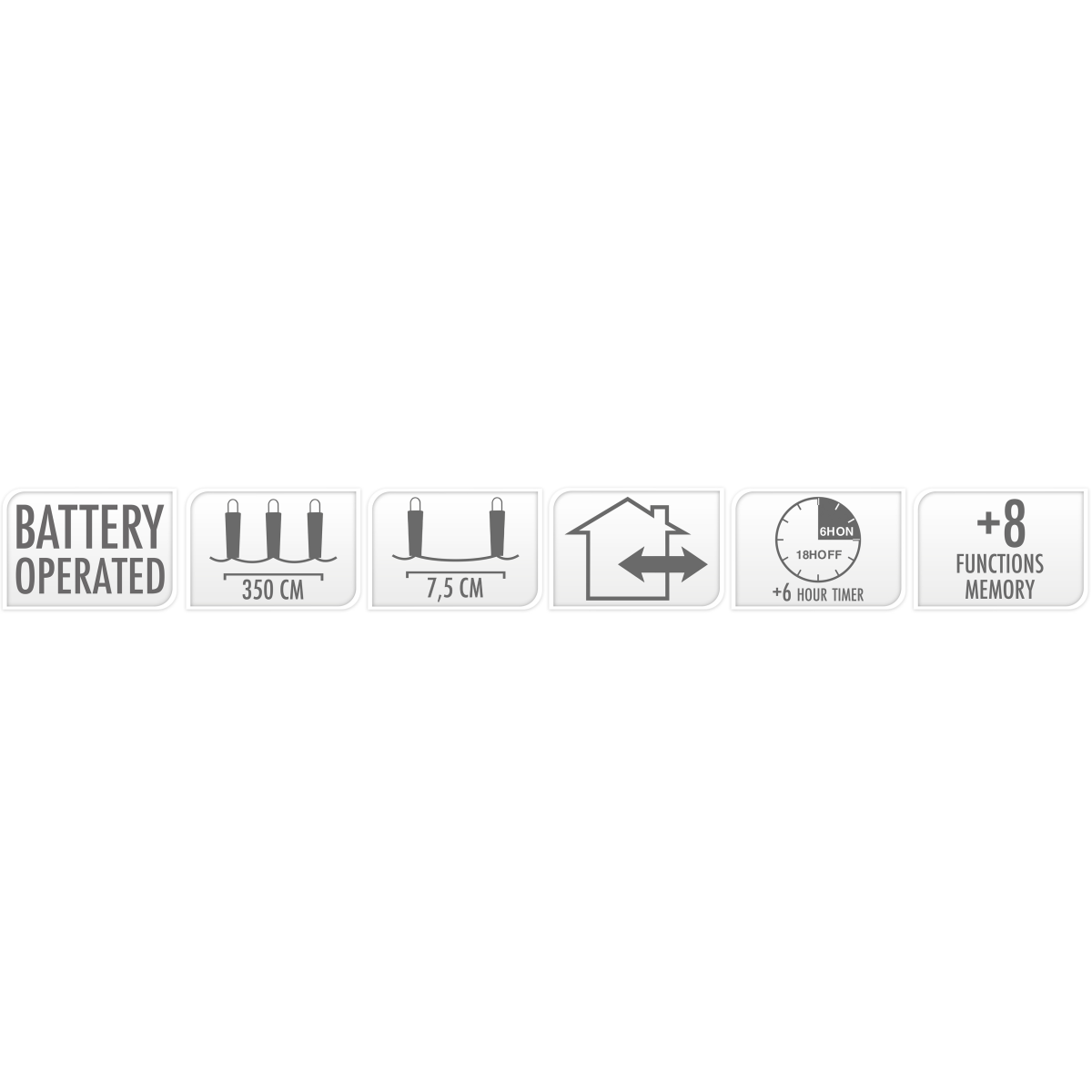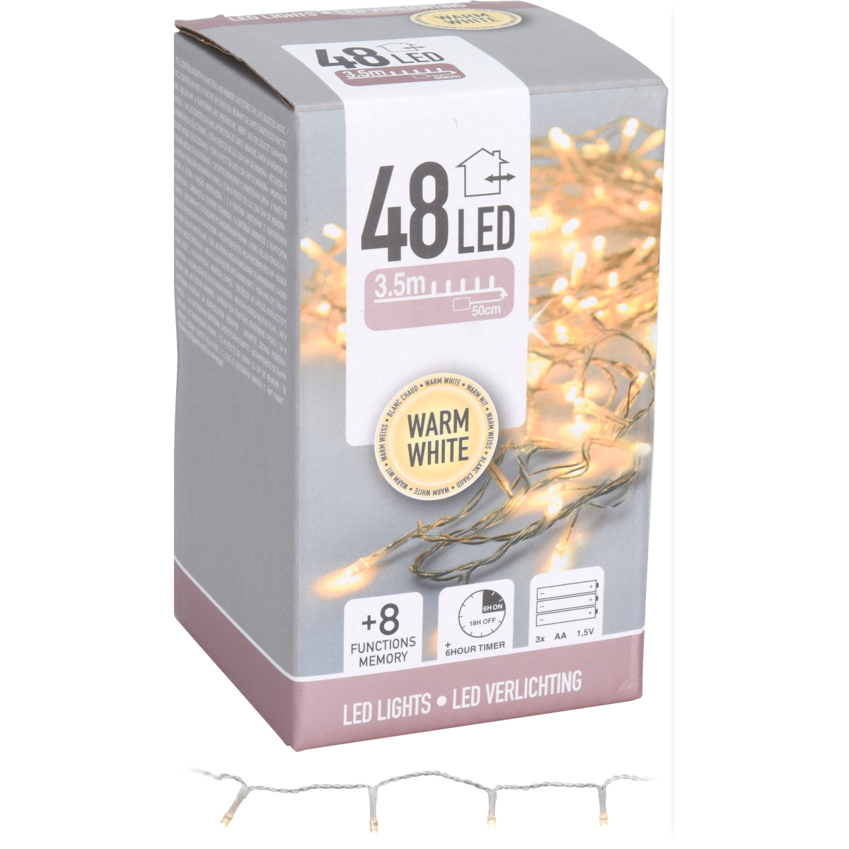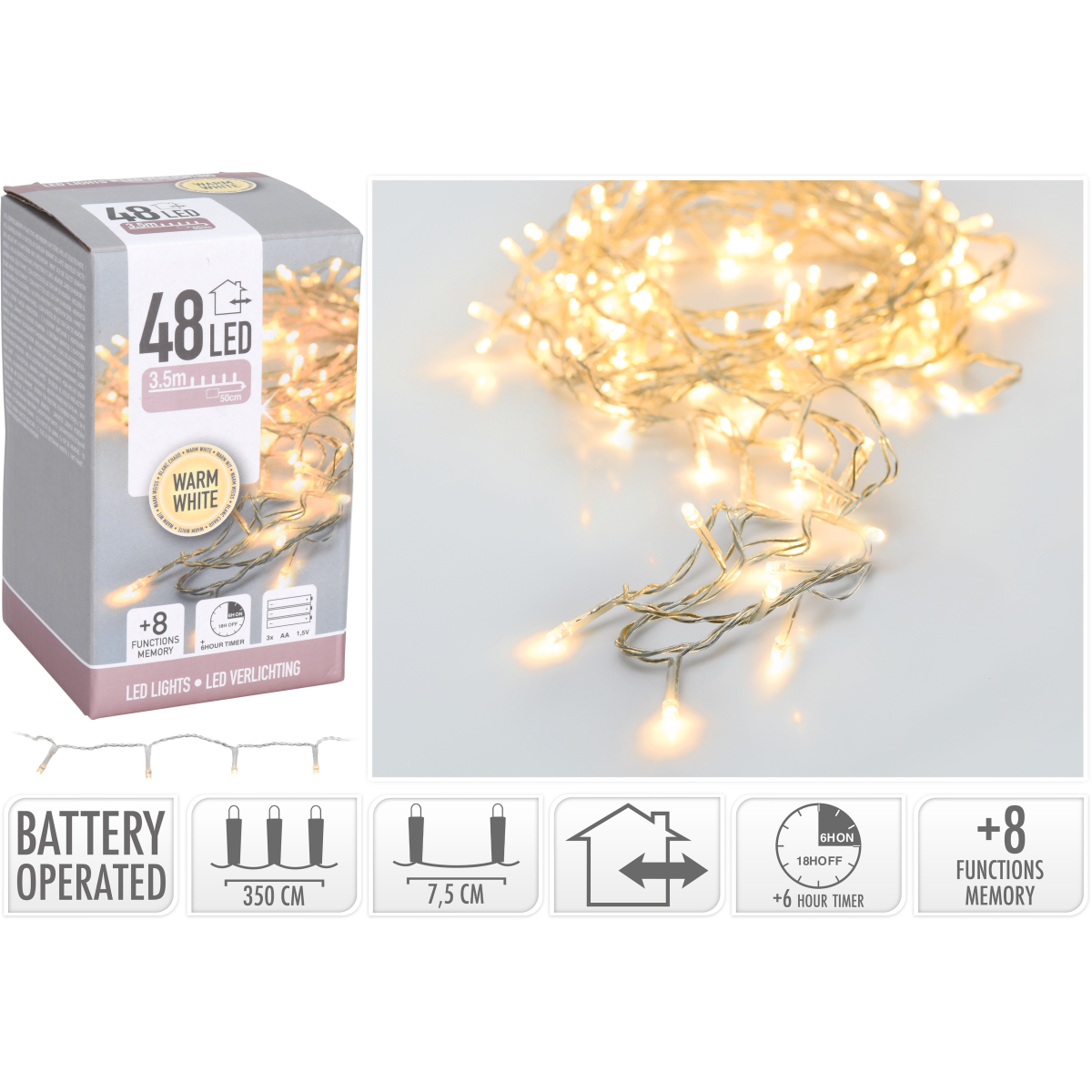 48 db LED-es, 3,6 méteres fényfüzér időzítő funkcióval, kábel hossza: 50 cm.