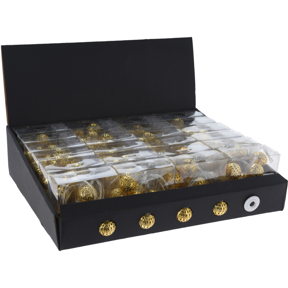 A fényfüzér egy elegáns és meghitt hangulatot teremtő világító dekoráció, amely tökéletes választás lehet otthona vagy kertje díszítésére. A termék 1 méter hosszú fényfüzér részt és egy 30 centiméteres kábelt tartalmaz, így könnyen elhelyezhető kívánt helyen. A meleg fehér LED-ek lágy fénye kellemes atmoszférát teremt, míg az arany színű kábel eleganciát kölcsönöz a környezetnek.