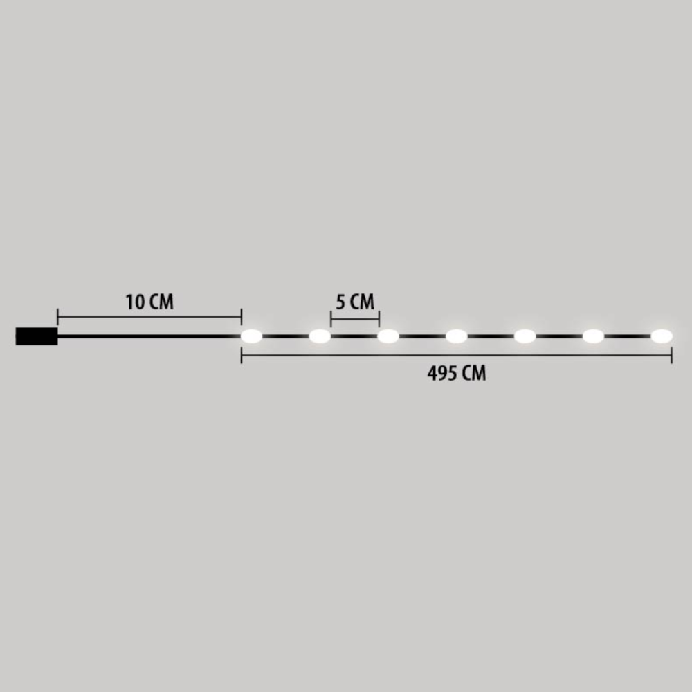 Dobja fel otthona hangulatát ezzel a 495 cm hosszú beltéri fényfüzérrel. A kábel hossza 30 cm, valamint 6/18 órás időzítővel és vezetékbe integrált micro-LED-fel rendelkezik. 3 db AA elemmel működik, melyet a termék nem tartalmaz. A 100 db hideg fehér LED fényforrás tiszta és modern megjelenést biztosít a szobában.