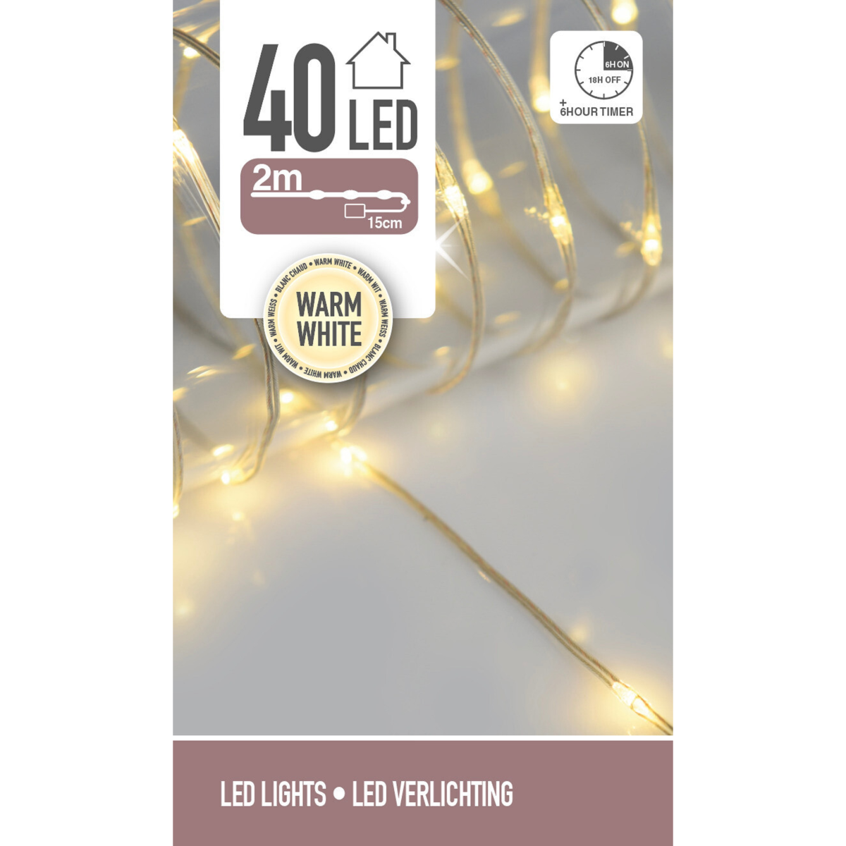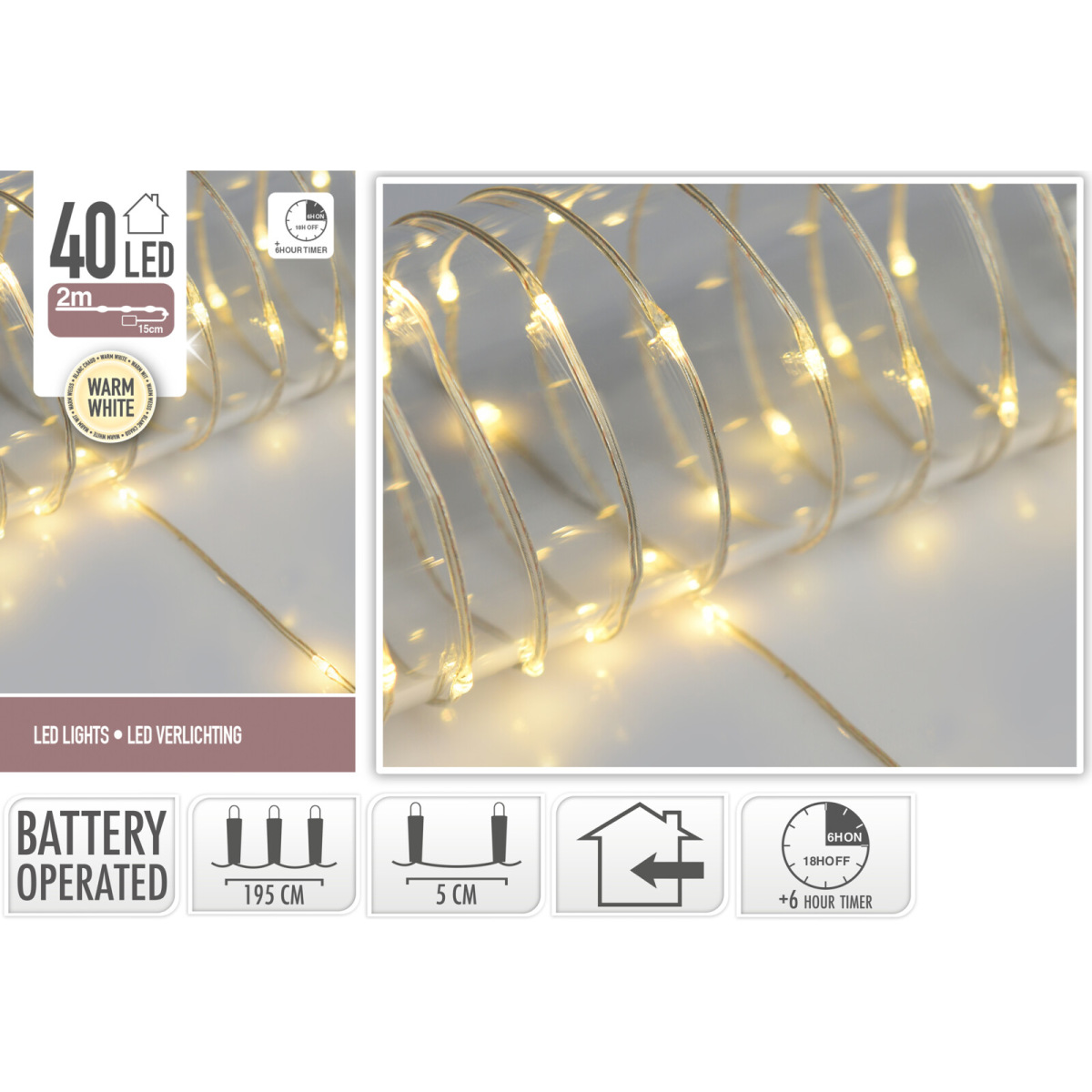 Varázsoljon meghitt hangulatot otthonába ezzel a meleg fehér fényű 200 cm-es fényfüzérrel! Beépített, 6/18 órás időzítővel rendelkezik. 3 db AA elemmel működik, melyet a termék nem tartalmaz. Ez a beltérben használható 40 LED-es fénysor igazi karácsonyi hangulatot áraszt a ház bármely pontjában. A ragyogó fények tökéletesen kiegészítik a karácsonyi dekorációt és meghitt hangulatot teremtenek, így tökéletes választás ez a karácsonyi dekorációs termék.