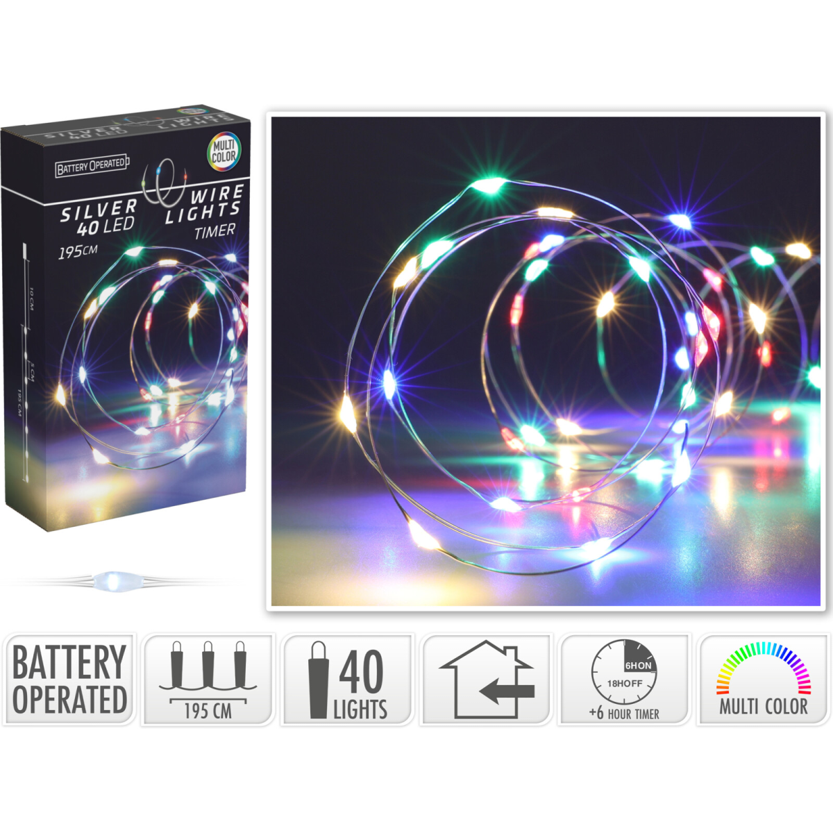 Beltéri használatra alkalmas, 40 LED-es fényfüzér 10 cm-es kábellel. Hangulatos világítást biztosít, megszépíti a teret. A fényfüzéren 195cm hosszan, 5 cm-es távolságban helyezkednek el a LED-ek. A LED-ek végtelen színkombinációt kínálnak, így mindig az aktuális hangulatához igazíthatja a világítást. 3 db AA elemmel működik, mely nem a termék tartozéka. Az időzítő funkció aktiválása után a termék 6 óra világítás után automatikusan kikapcsol, majd 18 óra elteltével ismételten világítani kezd. A ragyogó fények tökéletesen kiegészítik a karácsonyi dekorációt és meghitt hangulatot teremtenek, így tökéletes választás ez a karácsonyi dekorációs termék.