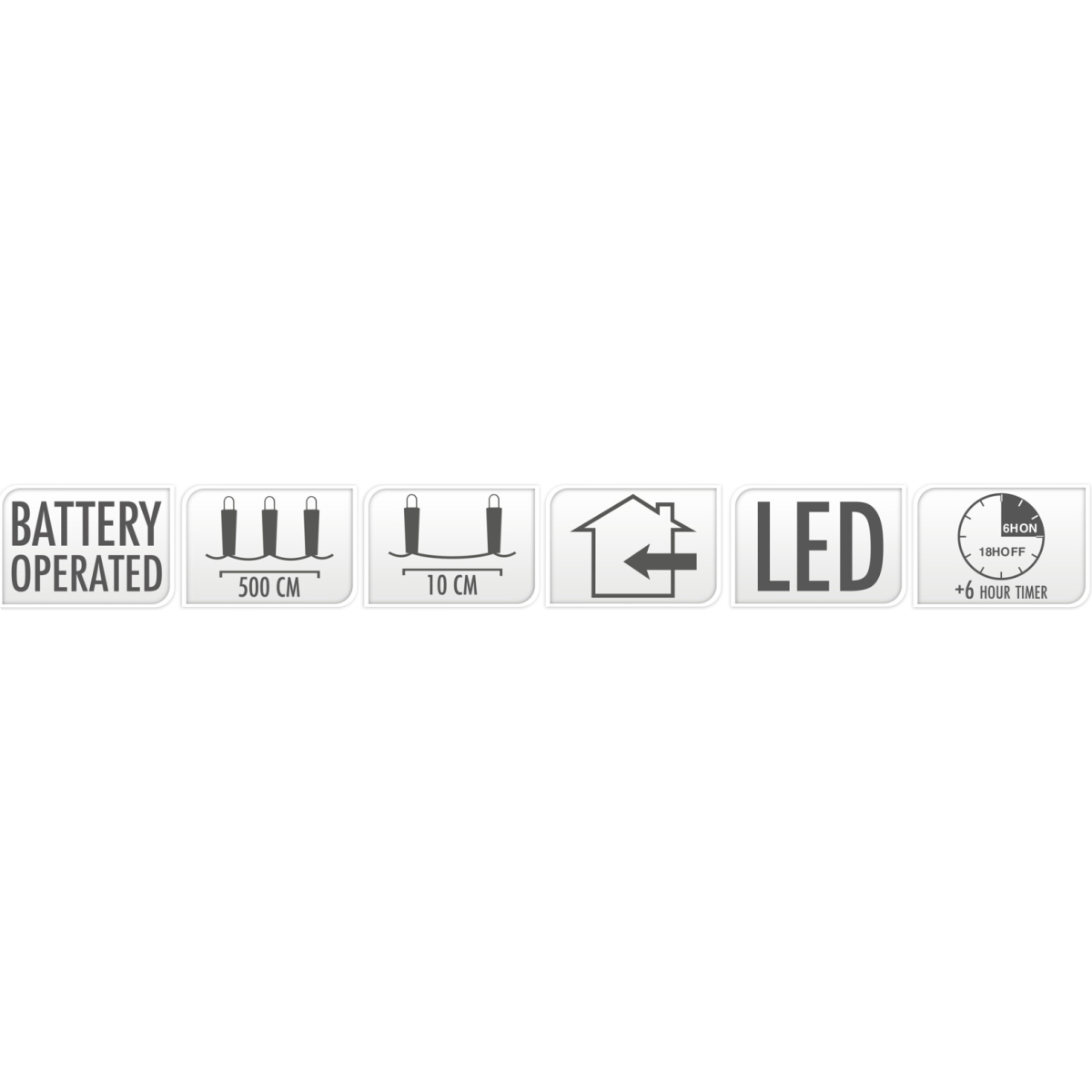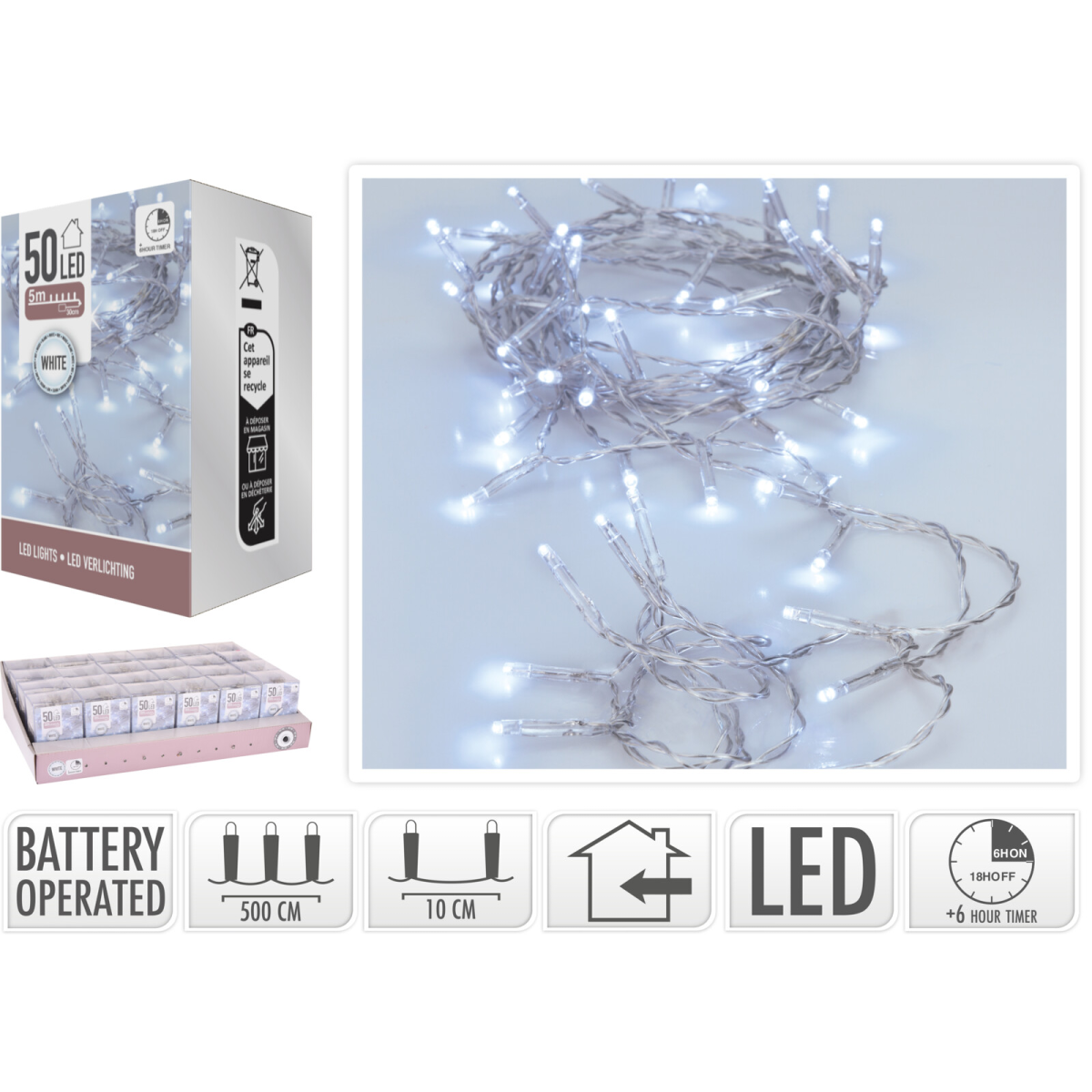 A fényfűzér egy sokoldalúan használható beltéri fénydekoráció, amely 50 darab LED izzót tartalmaz. A sokszínű fényű izzók meghitt és hangulatos megjelenést biztosítanak, A LED-ek egymástól való távolsága 10cm. A fénysor hossza 5 méter, a kábel hossza 0.3 méter. 6/18 órás időzítő funkcióval ellátott termék, mely 3 db AA elemmel működik (a termék nem tartalmazza). Ideális beltéri használatra, legyen szó akár ünnepi dekorációról vagy csak hangulatos esti világításról. A ragyogó fények tökéletesen kiegészítik a karácsonyi dekorációt és meghitt hangulatot teremtenek, így tökéletes választás ez a karácsonyi dekorációs termék.