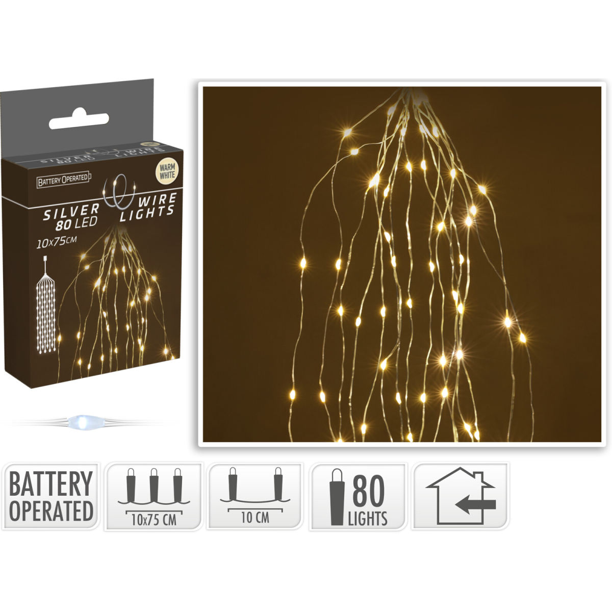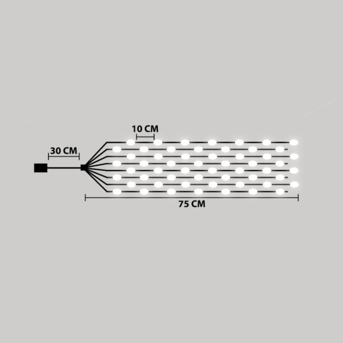 Dobja fel otthona hangulatát ezzel az egy pontból induló, 10 db 75 cm hosszú szálas beltéri fényfüzérrel. A 80 db meleg fehér LED tiszta és modern megjelenést biztosít. Tökéletesen alkalmas bármilyen ünnepi dekorációhoz vagy különleges alkalomhoz. A LED-ek 10 cm távolságban helyezkednek el egymástól a szálakon, így minden helyiséget varázslatossá tesznek. A kábel hossza 30 cm és a termék 3 db AA elemmel működik, melyet a termék nem tartalmaz. A ragyogó fények tökéletesen kiegészítik a karácsonyi dekorációt és meghitt hangulatot teremtenek, így tökéletes választás ez a karácsonyi dekorációs termék.