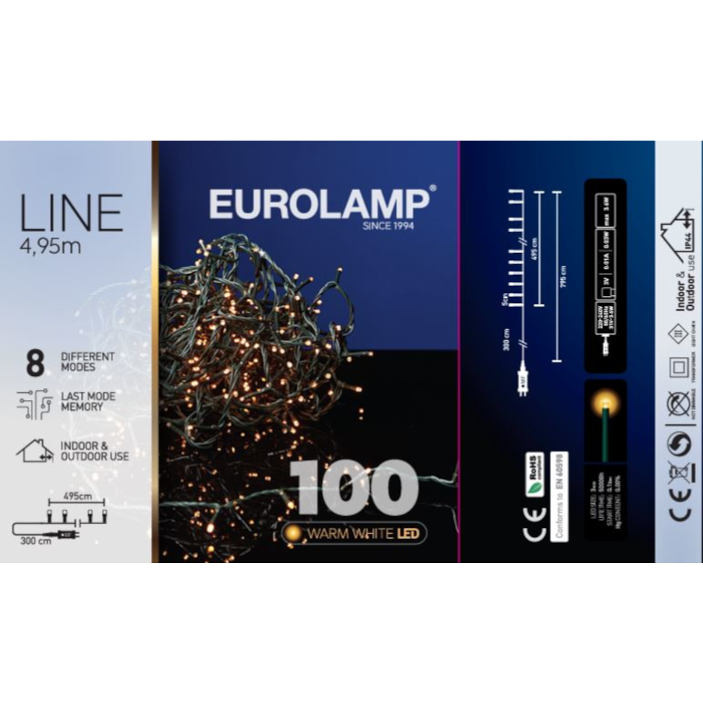 A fényfüzér adapterén lévő gomb segítségével különböző fényjátékokat választhat ki, még szebbé téve a meghitt pillanatokat. Kültéren és beltéren egyaránt használhatóak az IP44 védelem miatt. Figyelem, az IP44 védelem miatt a fényfüzért kültéren csak fedett helyen használja, ahol csapadék közvetlen nem éri. A tápegység tartozéka a doboznak. Fényfüzér hossza: 4,95 méter. Tápvezeték hossza 3 méter. A Eurolamp márkájú innovatív fényfüzérek kiválóan alkalmasak különböző rendezvények, családi ünnepek kiegészítő dekorálására. Mesébe illő hangulatot kölcsönöznek otthonába, melyek akár karácsonykor, akár az év többi napján is kellemes hangulatot árasztanak környezetében.