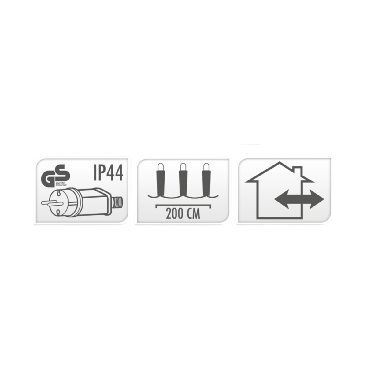 A fényfüzér egy sokoldalúan használható kültéri fénydekoráció, amely 160 darab LED izzót tartalmaz. A meleg fehér fényű izzók meghitt és hangulatos megjelenést biztosítanak. A fénysor hossza 2 méter, magassága 1 méter, a hálózati kábel hossza 3 méter. A kábel átlátszó színű. Hálózatról működik. Ideális kültéri használatra, legyen szó akár kerti partikról, ünnepi dekorációról vagy csak hangulatos esti világításról.