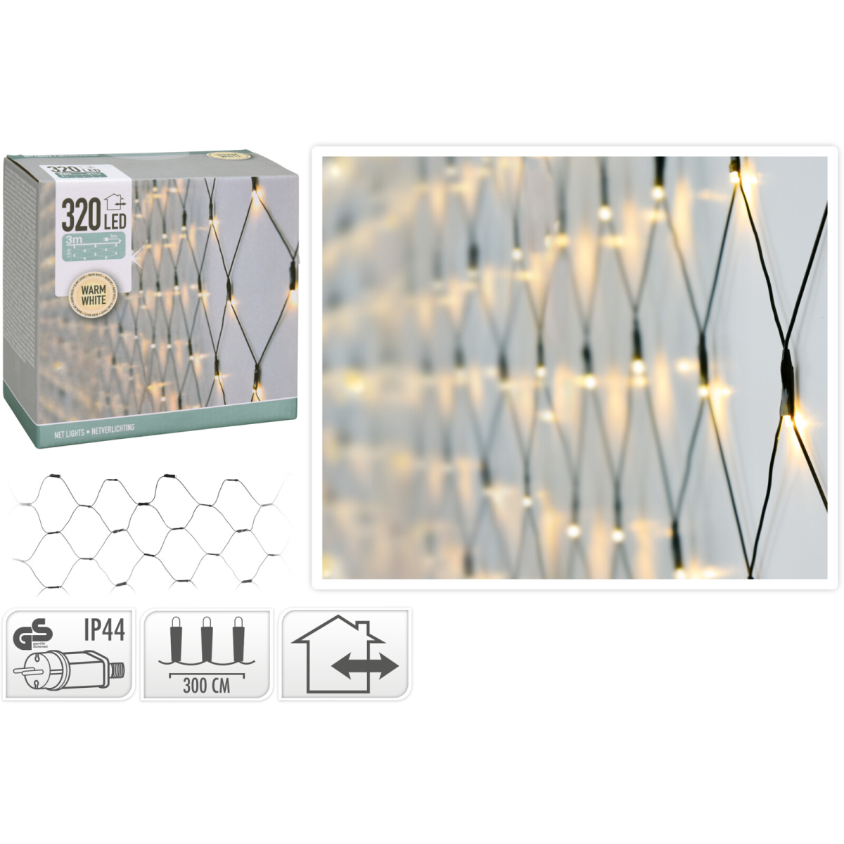 Varázsolj meghitt ünnepi hangulatot otthonodba ezzel a gyönyörű karácsonyi fényhálóval. Ragyogó fénye tökéletesen kiegészíti a karácsonyi dekorációt. Kül- és beltéri dekorálásra egyaránt alkalmas 320 LED-es meleg fehér hálós világítás, 5 mm-es gömbökkel, 3 m zöld vezetékkel. Mérete: 300x150 cm. Hálózatról működik, IP44 elektromos adapterrel, 230 V, 50 Hz, 31 V-193 mA, 6 VA. Vezeték keresztmetszet: 0,15 mm2.