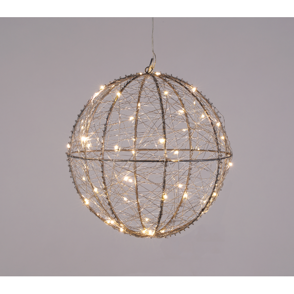 Hálós gömb lámpa LED díszvilágítás. 300 LED, melegfehér. 5 m hosszú áttetsző vezeték. 100-240 V~, 50/60Hz, max. 3,6 W. Adapter kimeneti feszültség: 4,5 V.