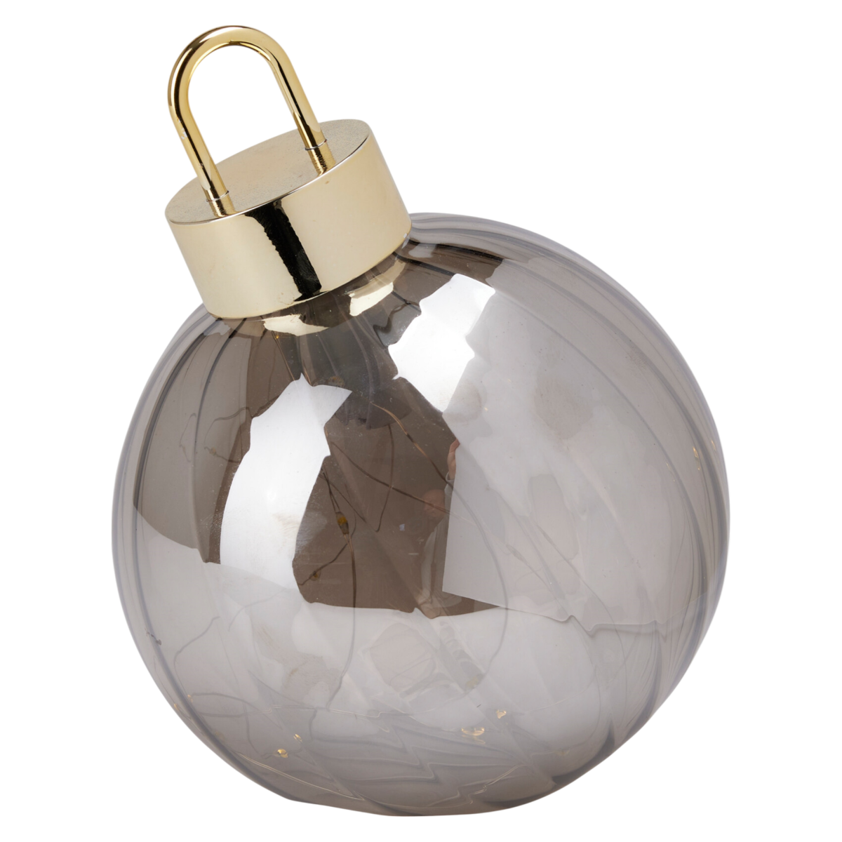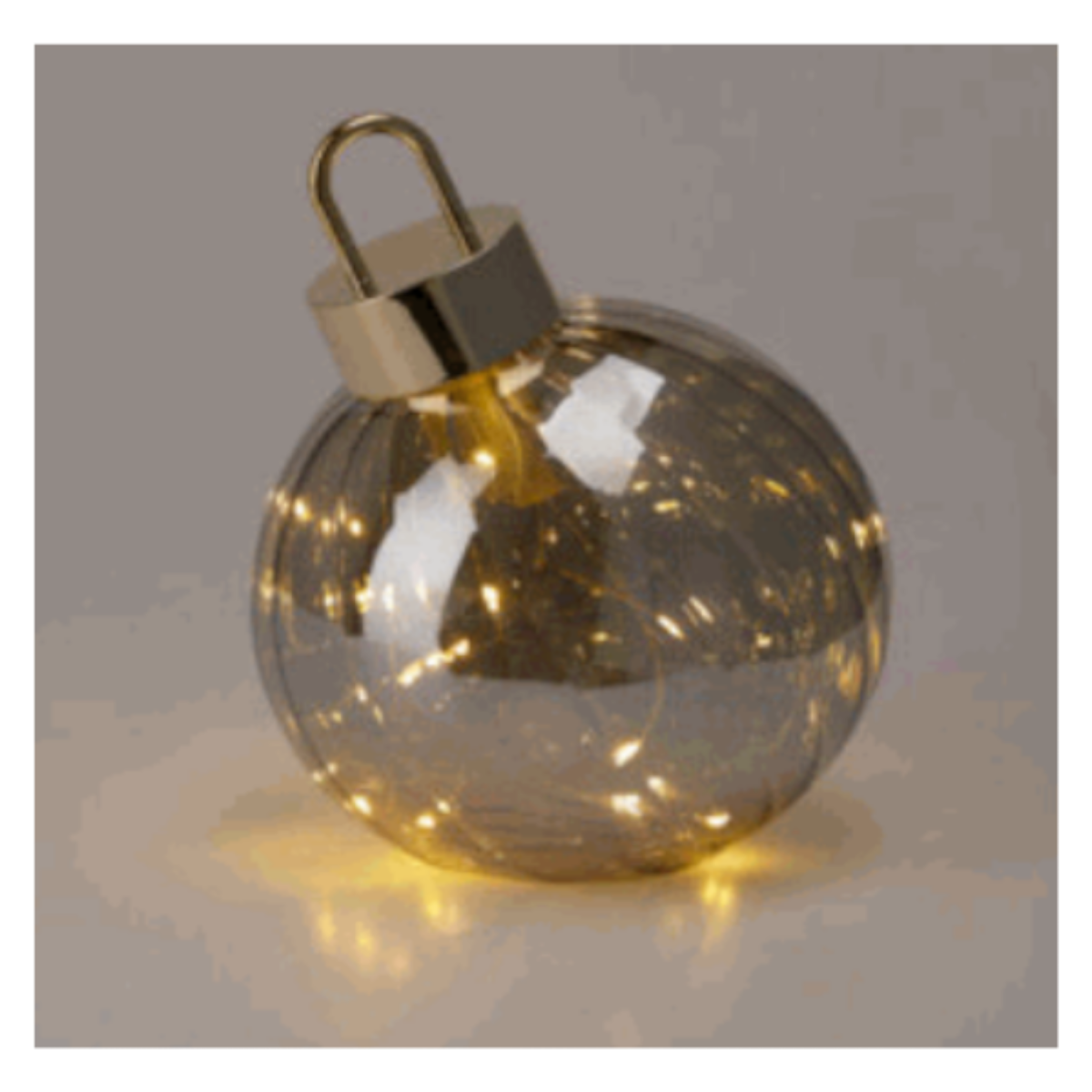 Hozz meleg, ünnepi fényt otthonodba ezzel a látványos LED-es karácsonyi gömbbel! A 18,5 cm magas, füstszürke színű üveggömb elegáns kiegészítője lehet asztali vagy polcos dekorációnak. A beépített 15 db meleg fehér LED lágy fényt sugároz, amely meghitt hangulatot teremt a sötét téli estéken. A gömb 2 darab AA elemmel működik (nem tartozék), így bárhová könnyedén elhelyezhető vezetékek nélkül.