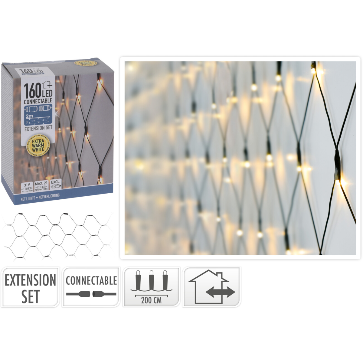Ezen hálózatról működő kiegészítő fényfüzér egy sokoldalúan használható kültéri fénydekoráció, amely 160 darab LED izzót tartalmaz.