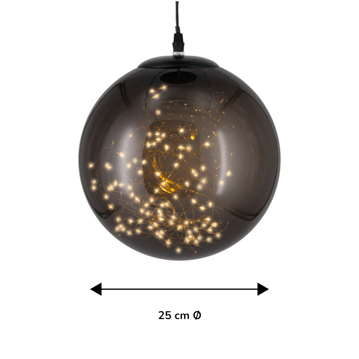 Ez a 25 cm átmérőjű, melegfehér fényű LED-es gömb különleges hangulatot varázsol beltérben és védett kültéren egyaránt. A belsejében elhelyezett 110 apró LED fénydekoráció látványos fényjátékot hoz létre, ami kiváló választás ünnepi alkalmakra, teraszra vagy nappaliba is.