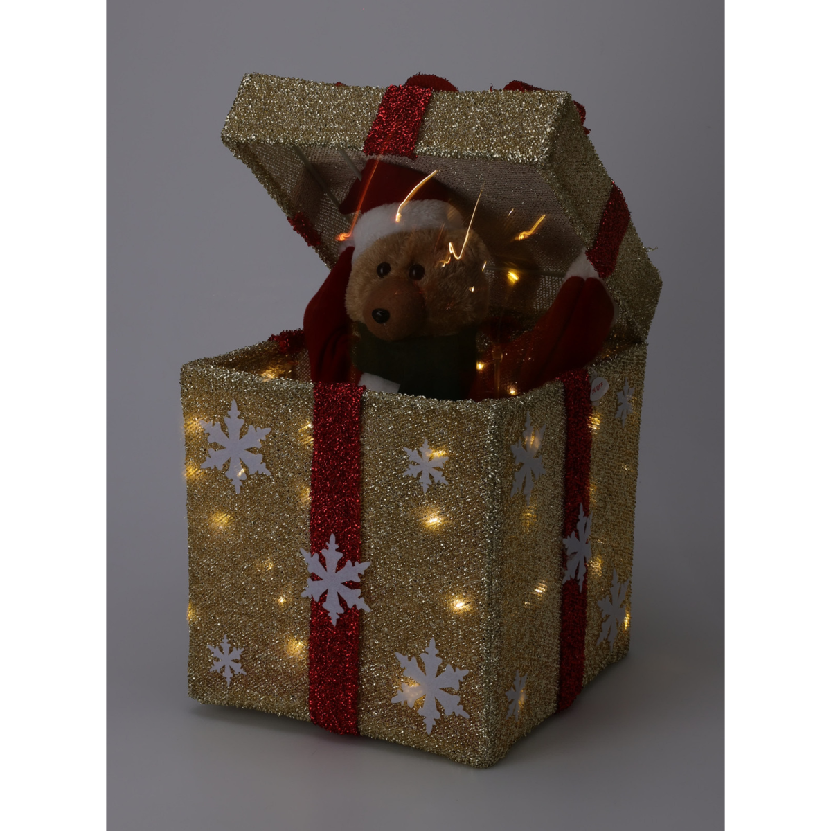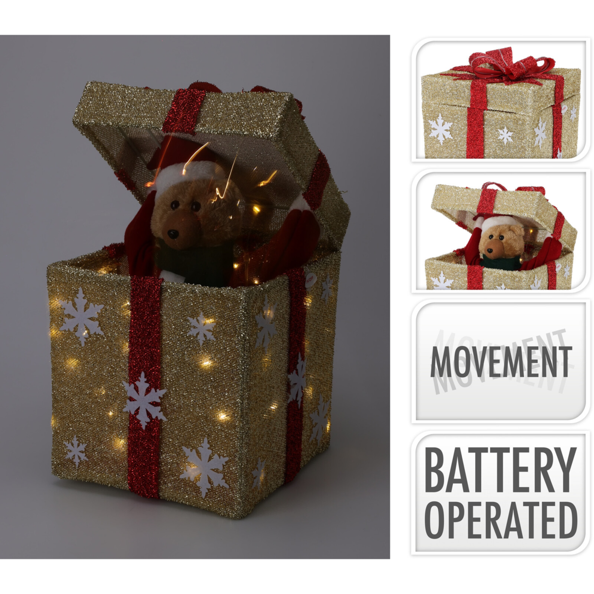 Ez az LED-es ajándékdoboz dekor tökéletes választás, ha ünnepi hangulatot szeretne teremteni otthonában, hiszen 50 db meleg fehér LED és zenés funkciója gondoskodik a meghitt hangulatról. 3 db AA elemmel működik, az elemek nem képezik a termék részét. Akár ajándéknak is tökéletes választás.