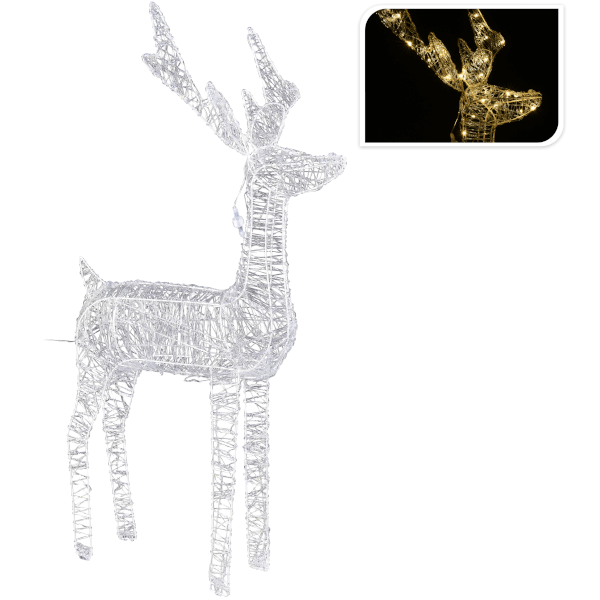 100 cm magas LED-es akril rénszarvas 100 db meleg fehér mikro LED-del, 5 méteres kábellel.