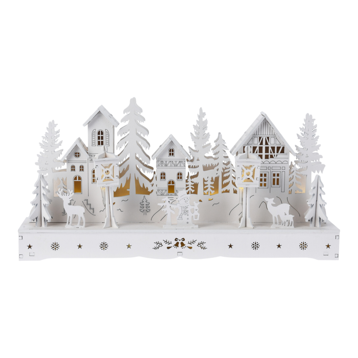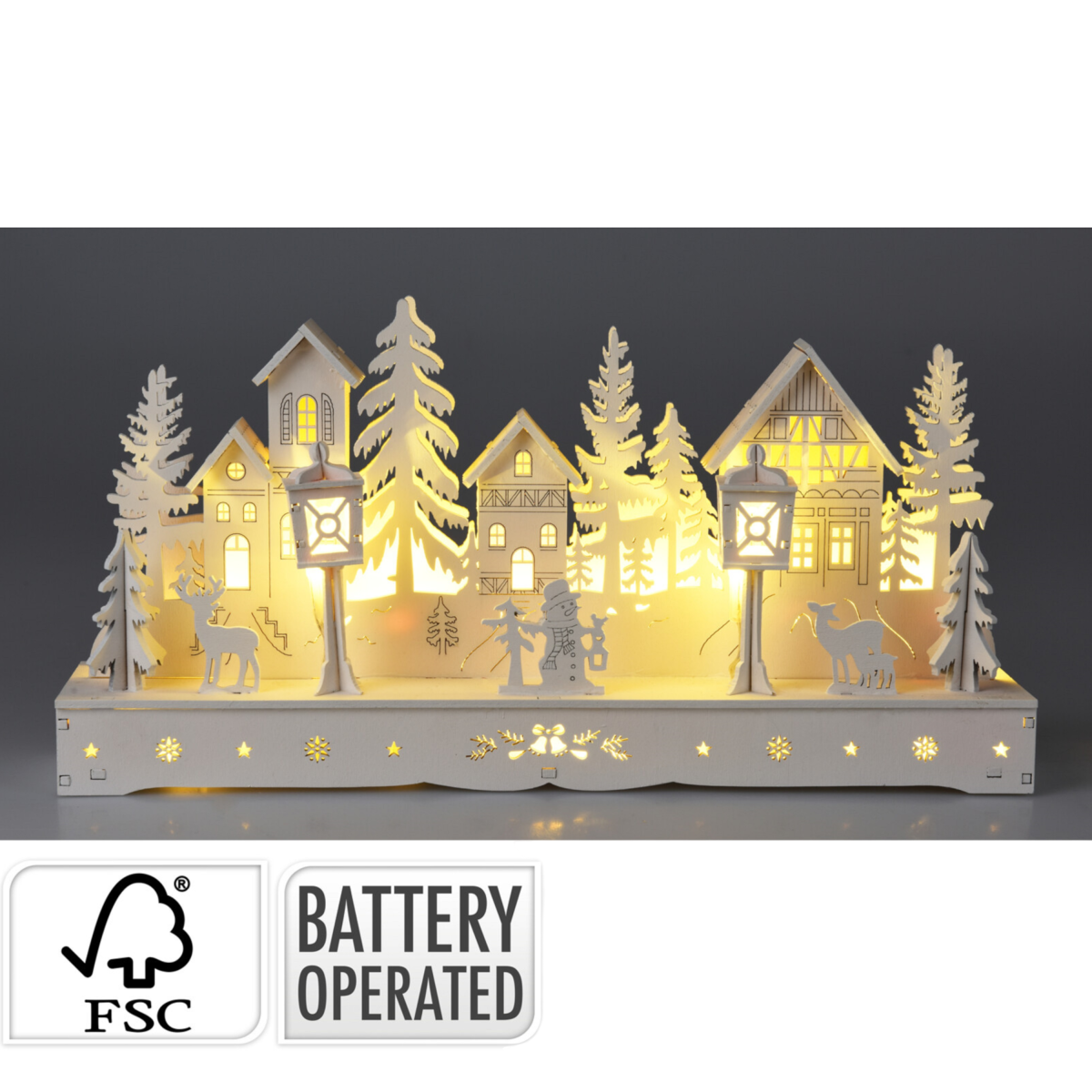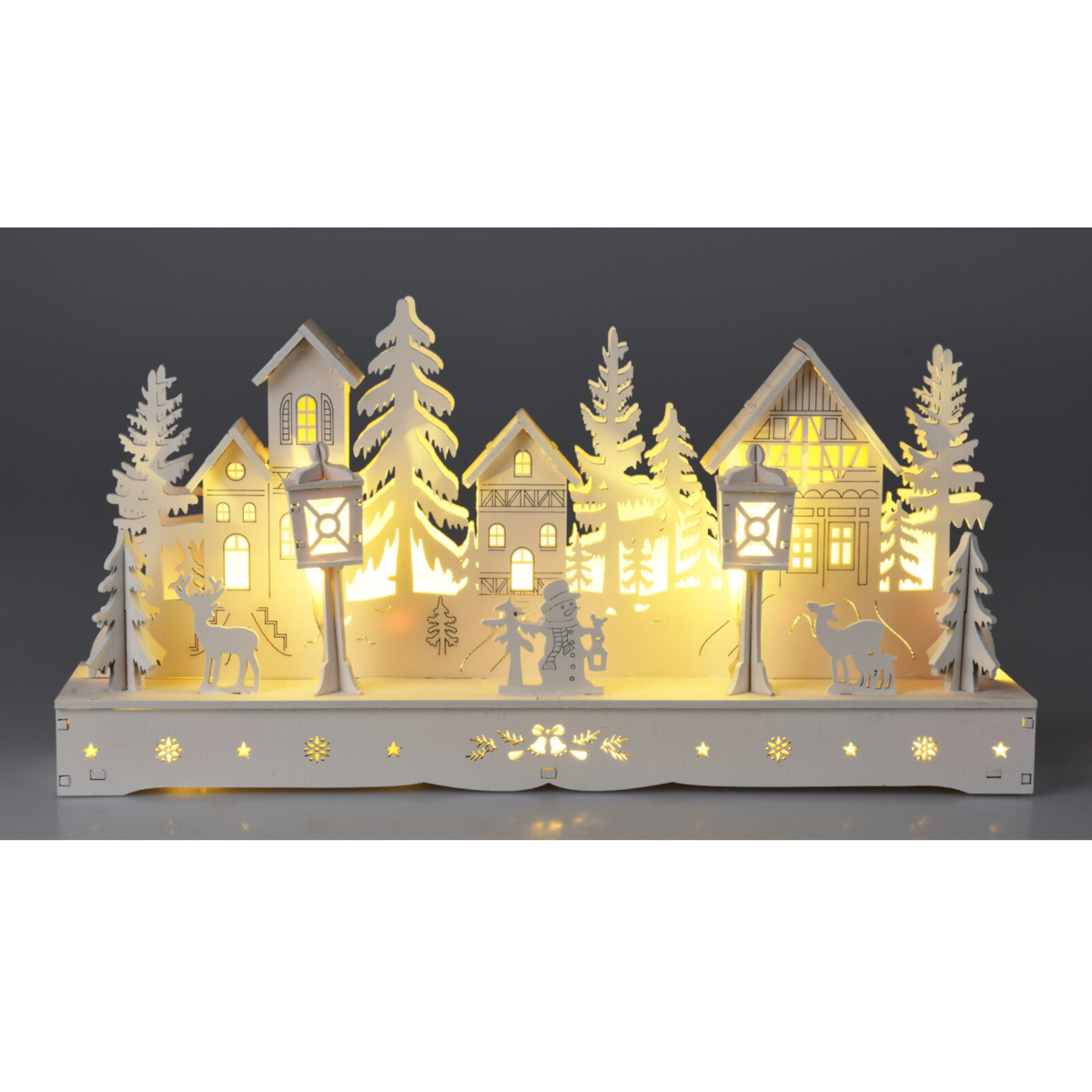 Gyönyörűen kidolgozott fa LED-es jelenet dekoráció, tökéletes kiegészítője lehet bármely otthonnak. Természetes fából készült, mely eleganciát és melegséget sugároz. Finom részletei egyedivé teszik. Meleg fehér ledekkel. Elemes - 2 db AA elemmel működik (külön megvásárolandó).
