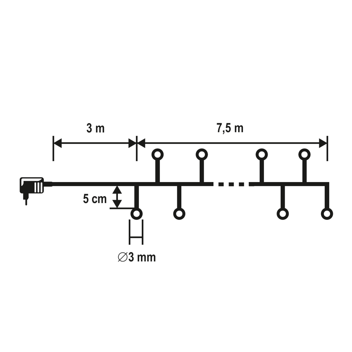 Varázsoljon hangulatos fényeket otthonába ezzel a kül- és beltéri kivitelű fénysorral! A 768 db, 3 mm-es hideg fehér fé LED izzó 7.5 m hosszú fekete vezetéken helyezkedik el, és 8 funkcióval, valamint memóriával rendelkezik. Az állítható fényerő mellett folyamatos üzemmódot vagy háromféle ismétlődő időzítést választhat. A fénysor távirányítóval (CR2025 elem tartozék) vezérelhető, és egy kültéri IP44-es hálózati adapter biztosítja a tápellátást.
