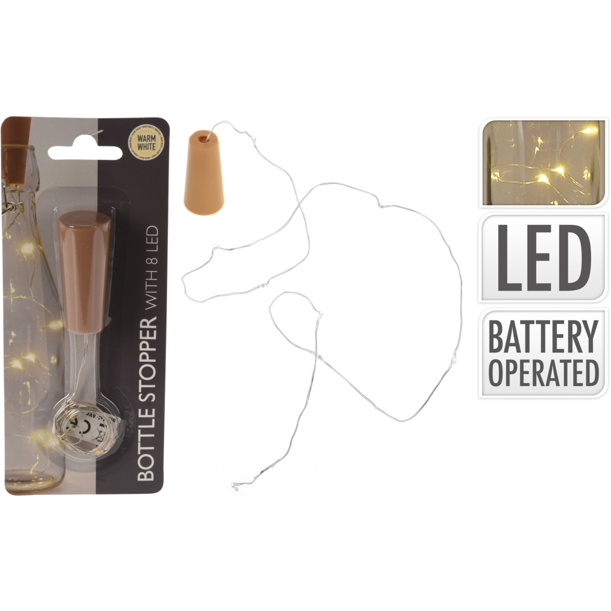 Mérete a dugónak: 23 mm x 48 mm. Teljes hossza: 75 cm. Meleg fehér ledes (8 led), 3 db LR44 elemmel működik, melyet a termék tartalmaz. Ezzel a dekorációs eszközzel igazán egyedi hangulatot teremthetünk a helyiségben.